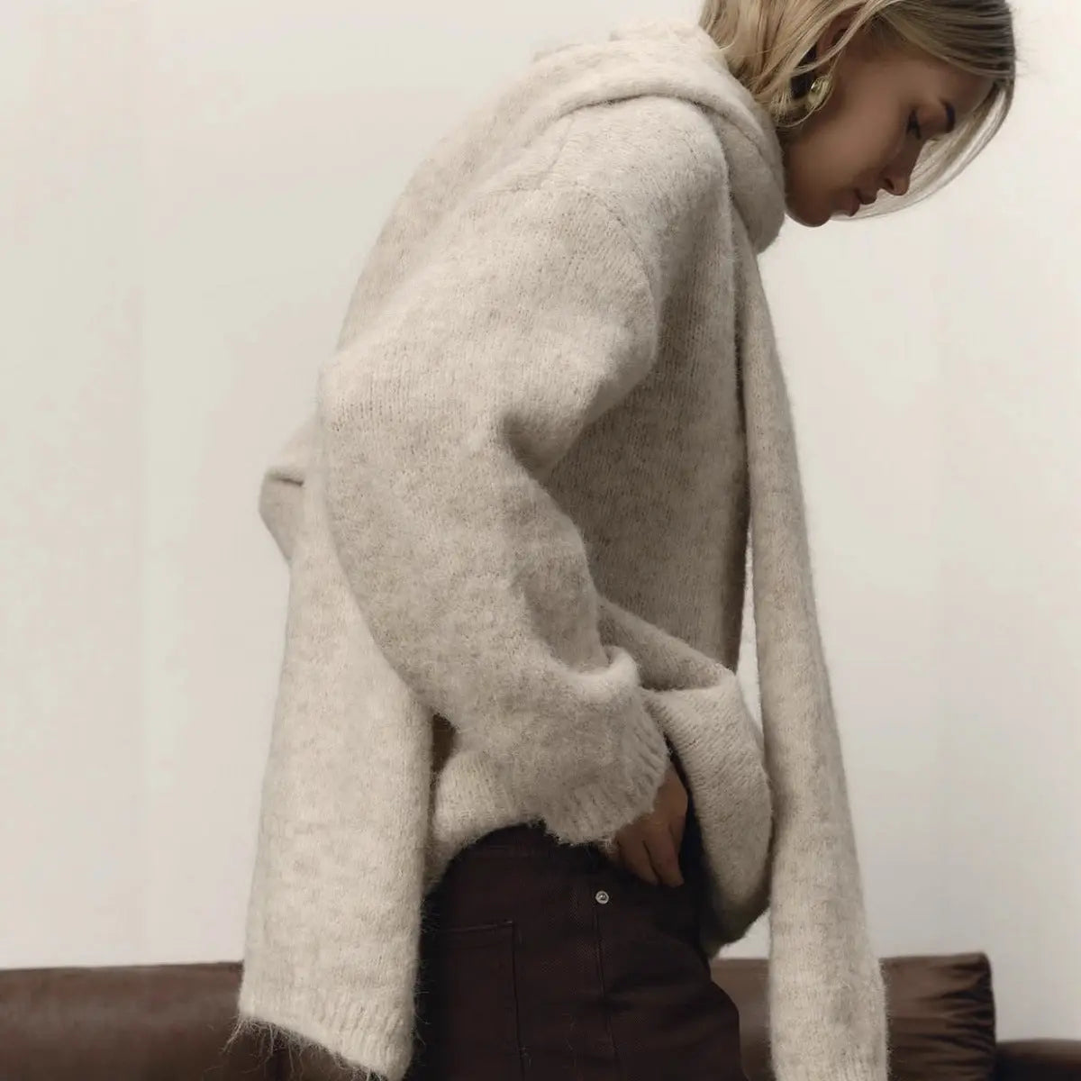Loose Lazy Soft Wool Sweater Women Autumn Winter Pullover Loose Sweater Scarf Set Bella Mia