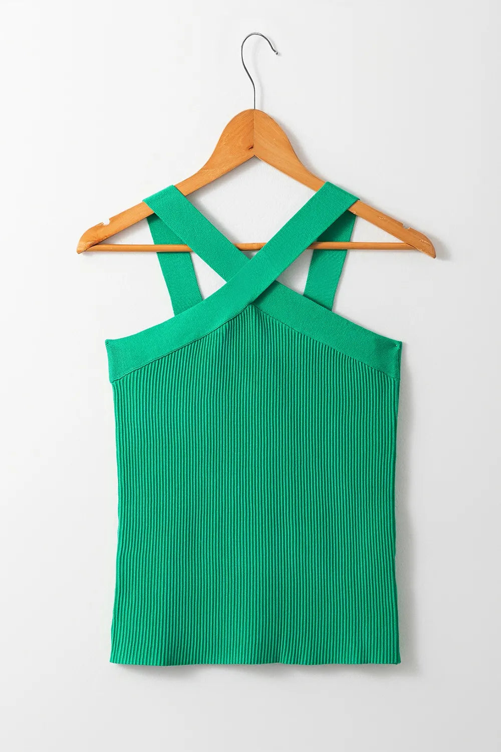 Ribbed Criss Cross Halter Neck Sheath Sweater Tank Top