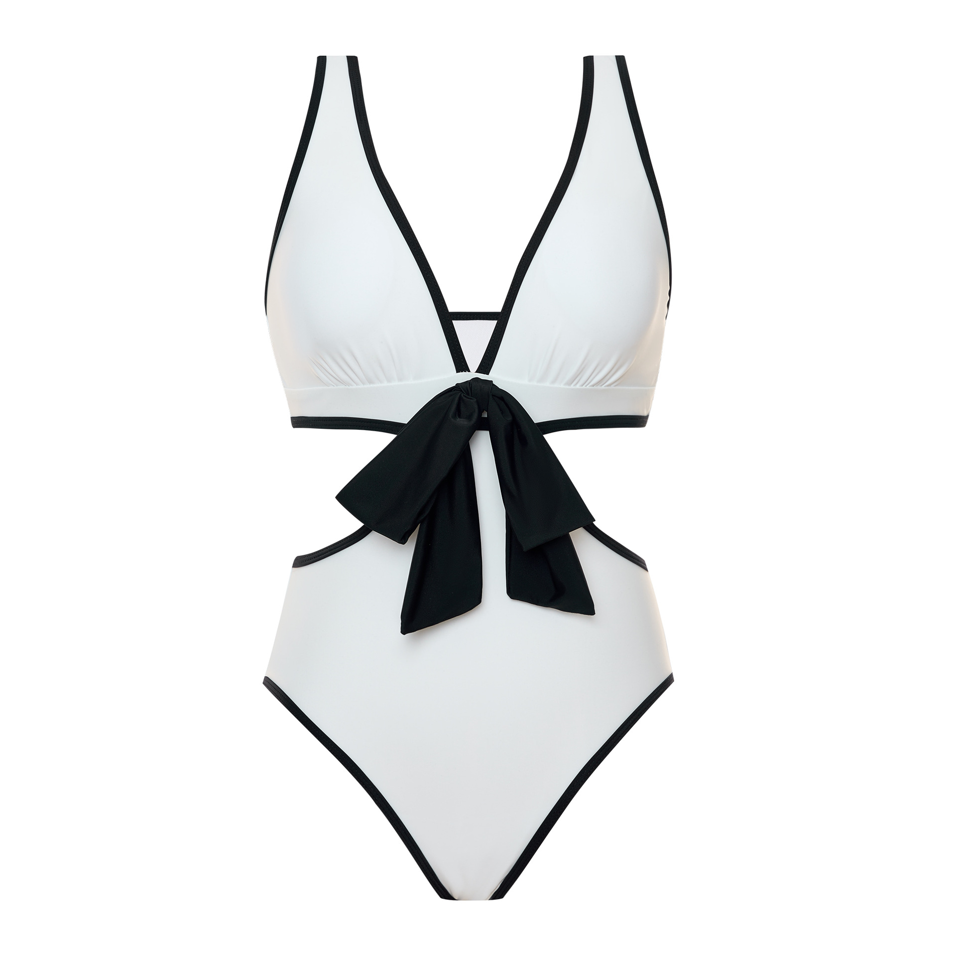Sexy Swimsuit Women Slim Fit Slimming Siamese Triangle Solid Color Black White Patchwork Nylon Swimsuit Bella Mia