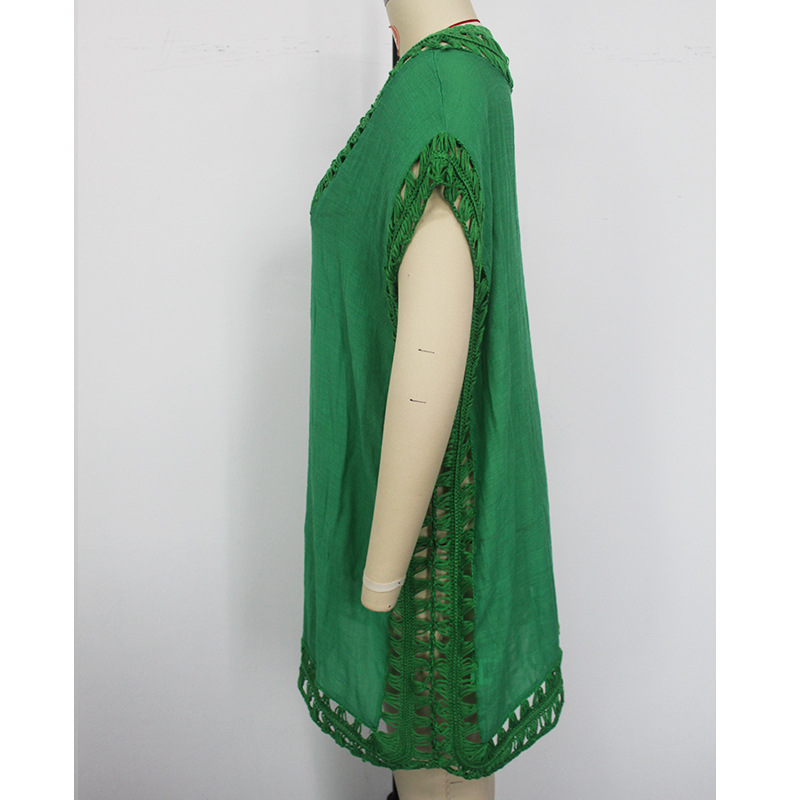Sun Protective Clothing Holiday Hand Hook Floral Neckline Stitching Solid Color Sexy Sun Protection Casual Short Beach Cover-up