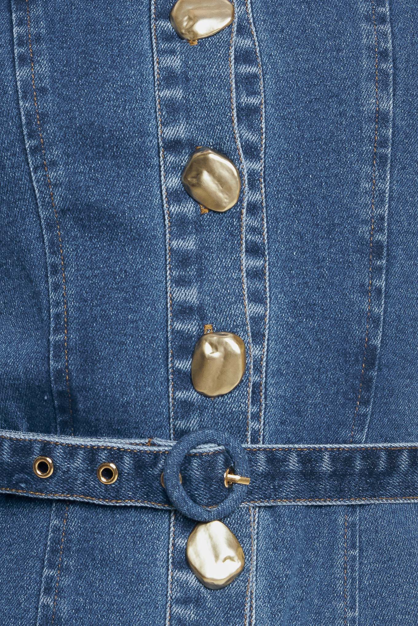 Sunday Stroll Denim Midi Dress With Button Front Belted Silhouette Flying Tomato