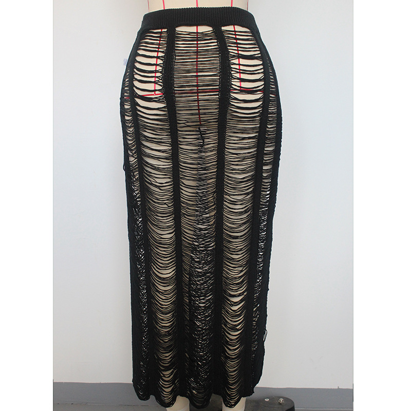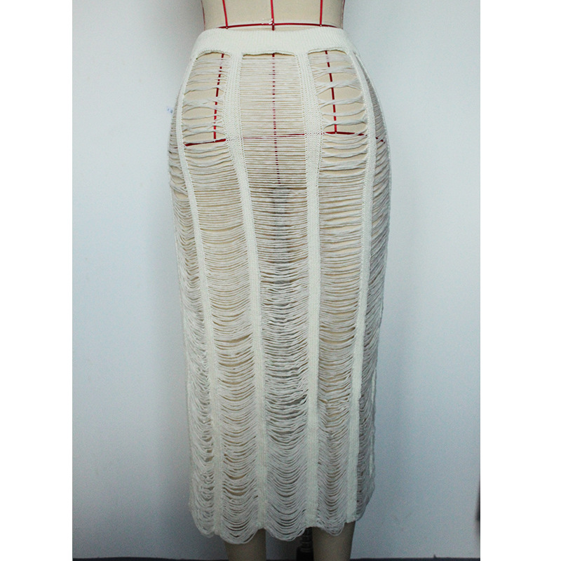 Sunscreen Sexy See through Split Beach Seaside Vacation Lace up Knitted Skirt Crochet hook