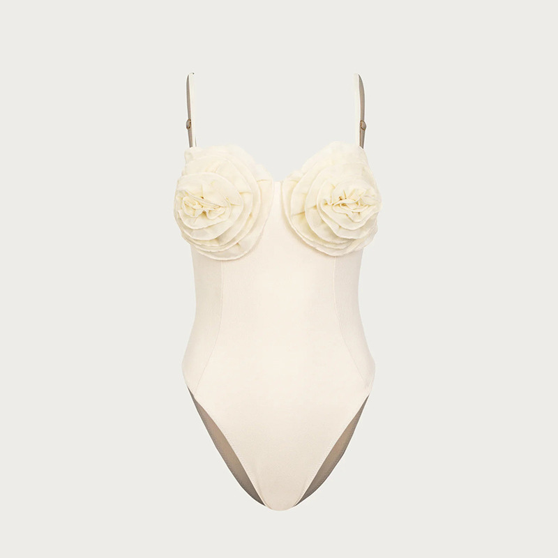 Swimwear Women Sexy Floral Solid Color One Piece Bikini Swimsuit