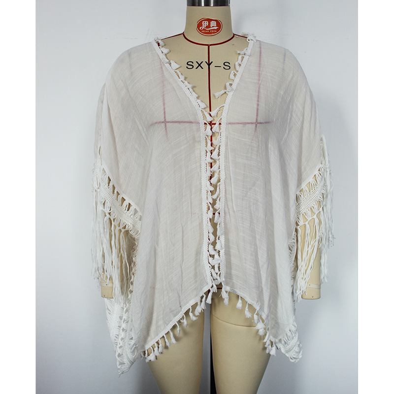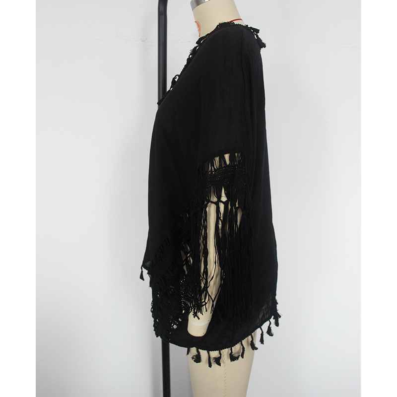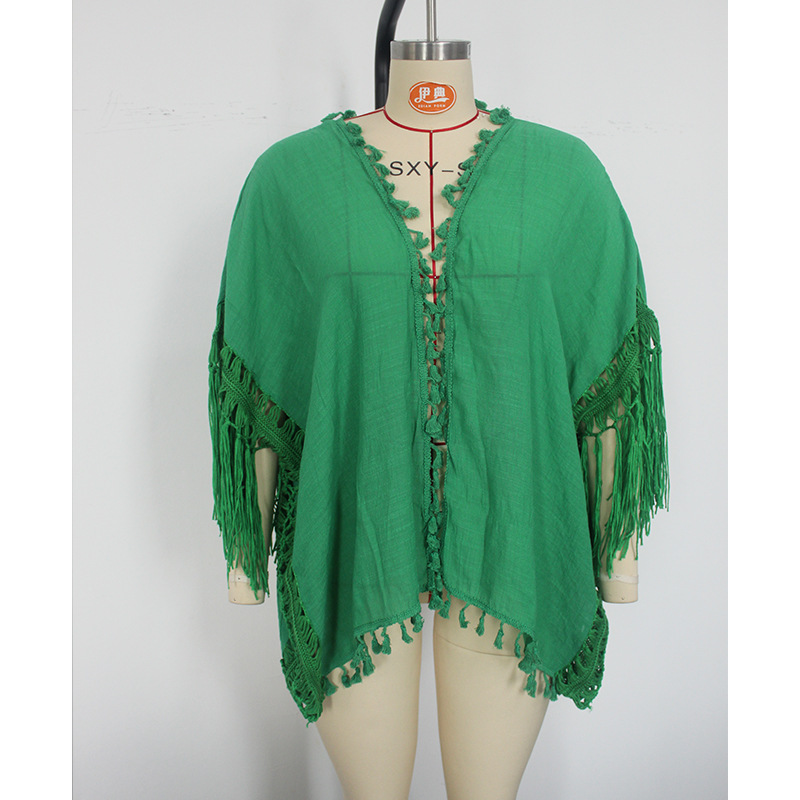 Tassel Cardigan Hand Crocheting Sleeve Edge Sexy Loose Casual Vacation Beach Sunscreen Swimsuit Cover