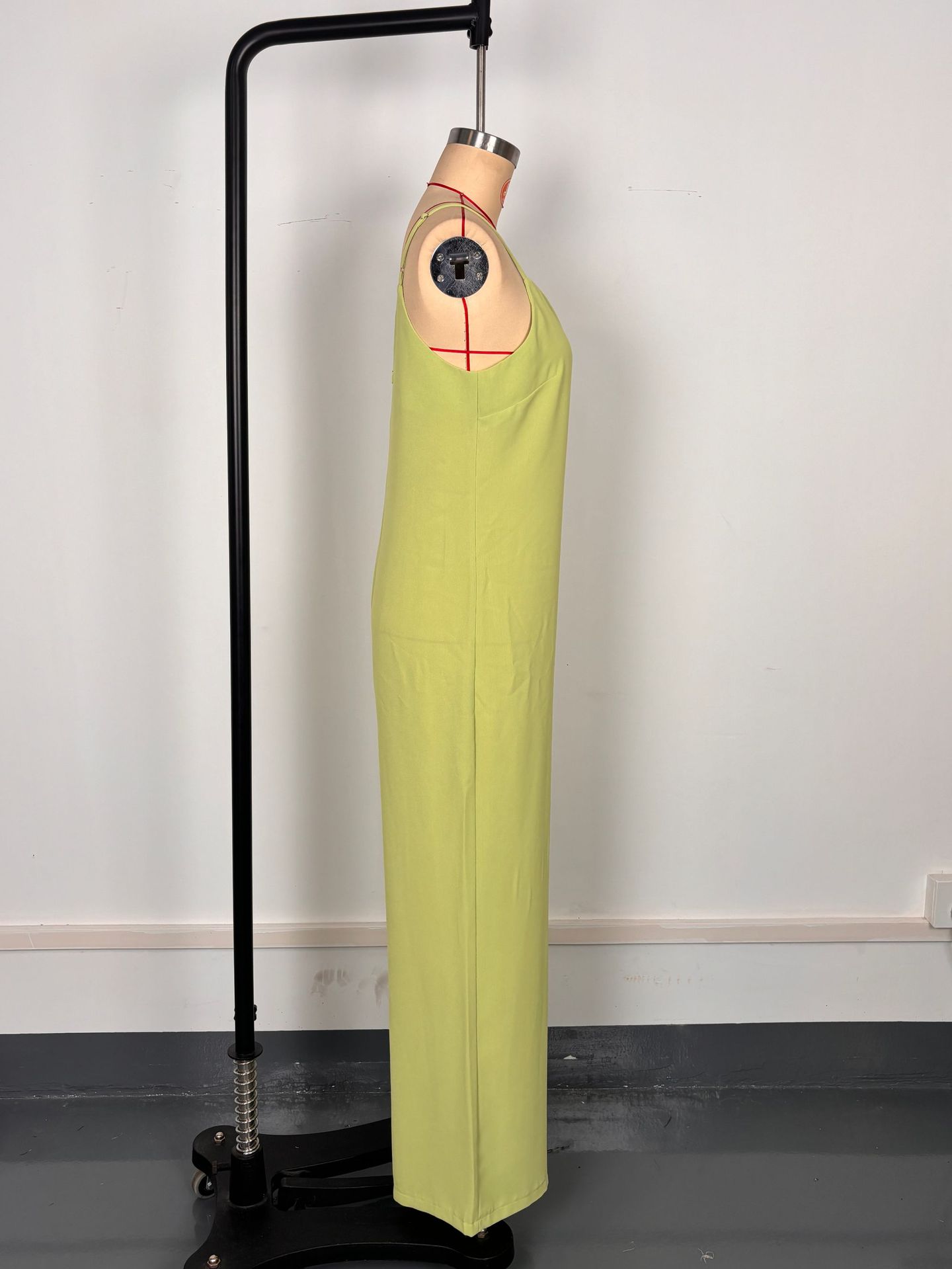 Women Clothing Solid Color Casual Sleeveless Sling Jumpsuit Simple Loose Wide Leg Pants Jumpsuit
