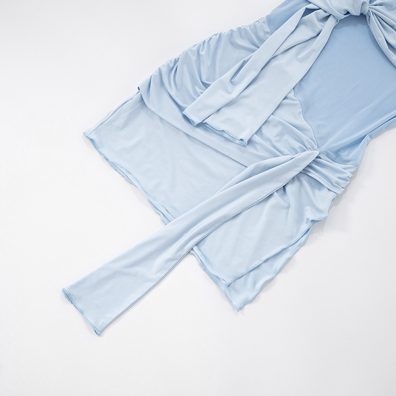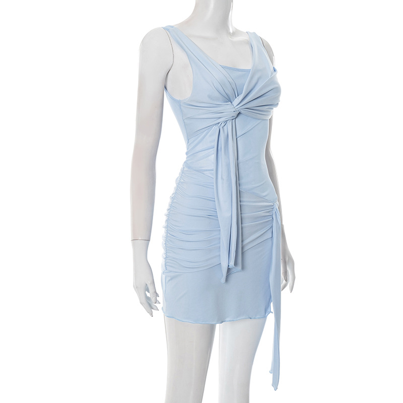 Women Clothing Summer Sexy Solid Color Ribbon Pleated Short Dress