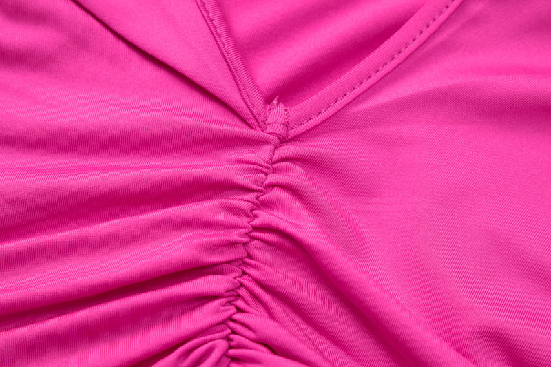 Women Clothing Summer Sexy V neck Slim Pleated Solid Color Long Sleeve Dress