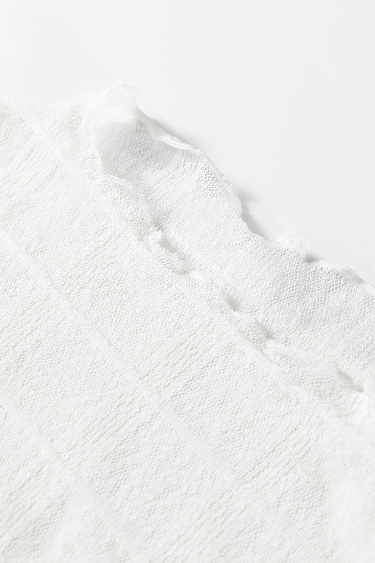 Dear-Lover White Plaid Mesh Top Women's Daily Sheer Long Sleeve Lightweight