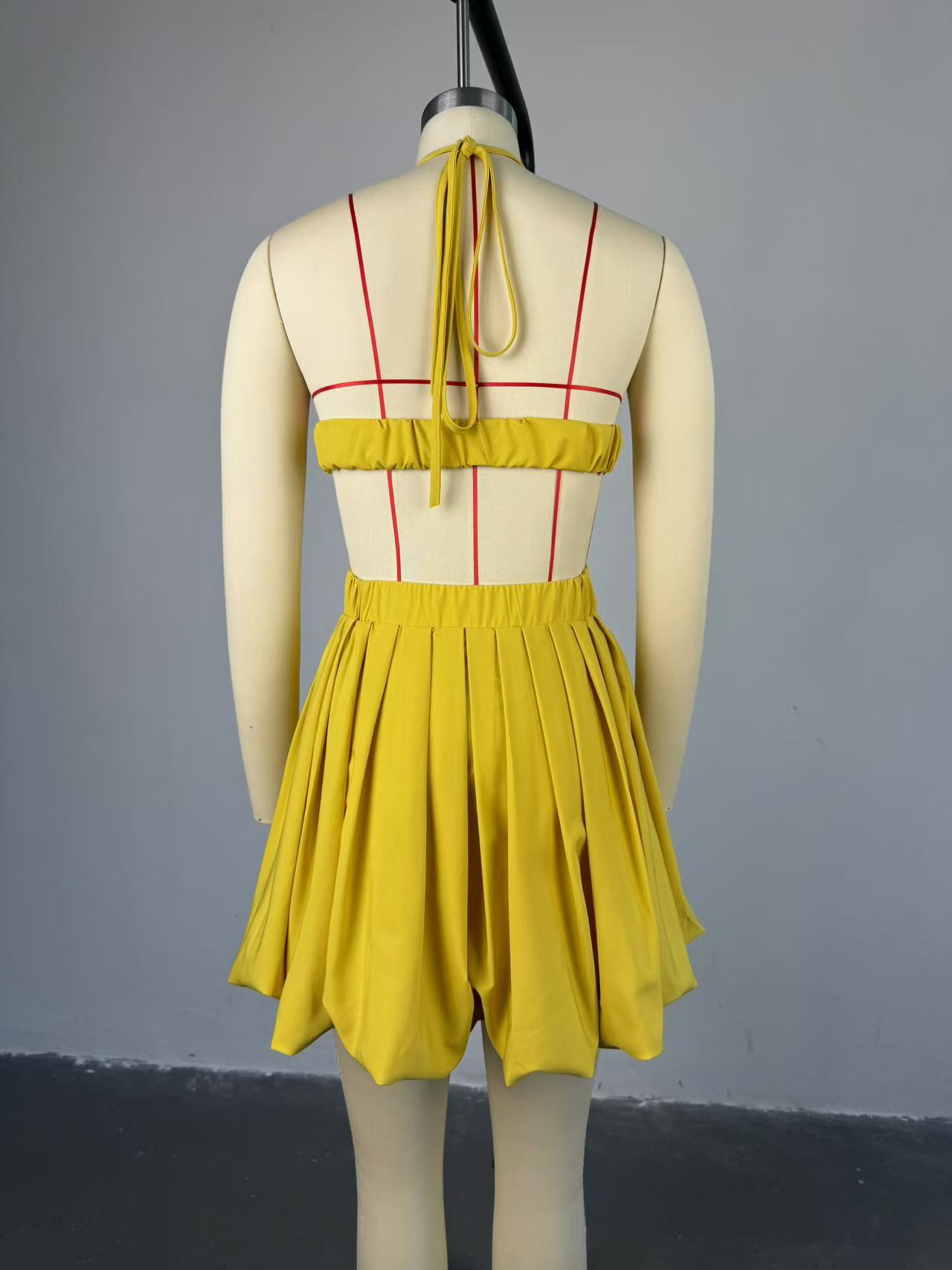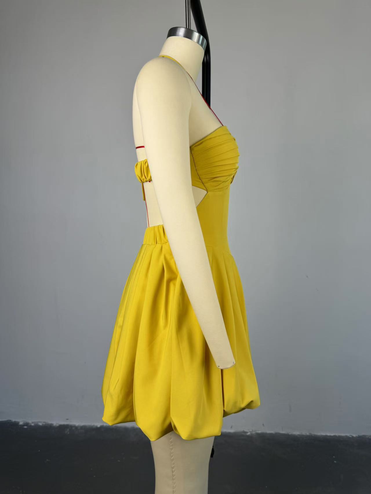 Women Clothing Autumn Sweet Fresh Halter Tube Top Backless High Waist Short Dress Puffy dress Bella Mia
