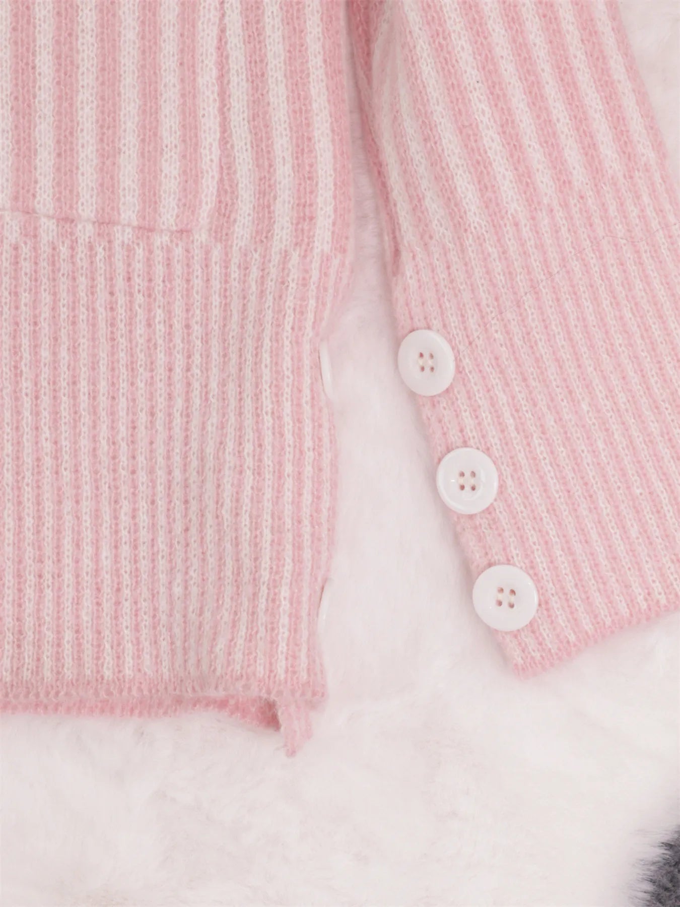 Striped Button Front Cardigan with Contrast Trim Polyester