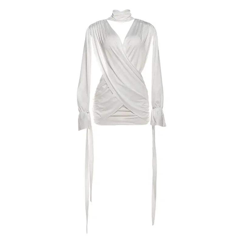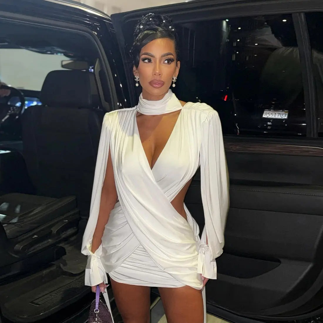 Autumn Winter Women Solid Color Sexy Hollow Out Cutout Long Sleeved Deep V Plunge neck Cross Stitching Hip Dress Bella Mia