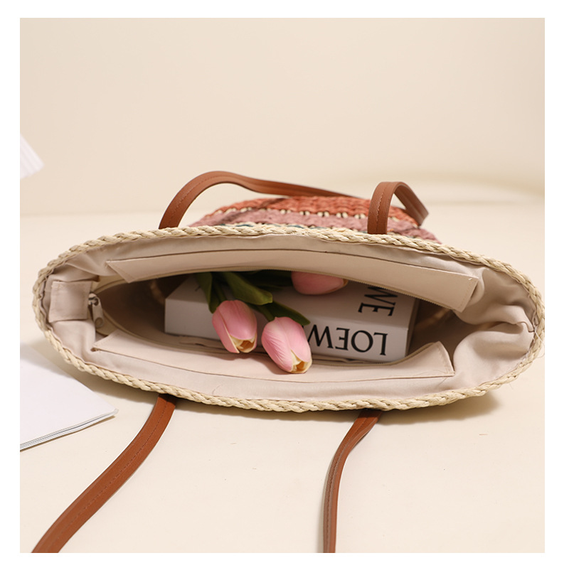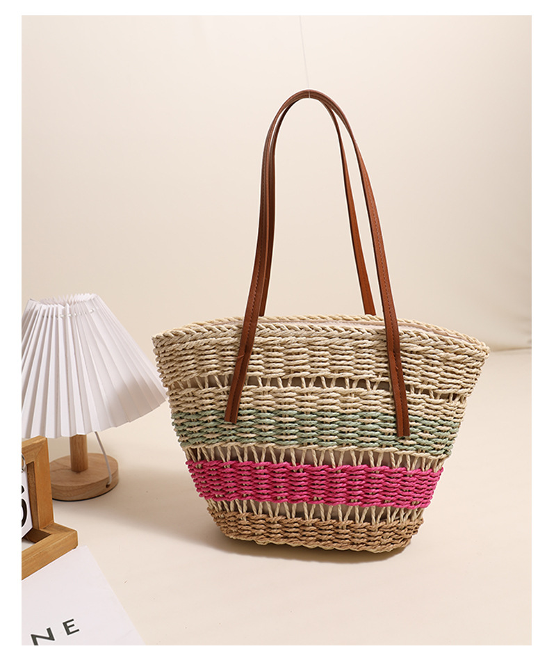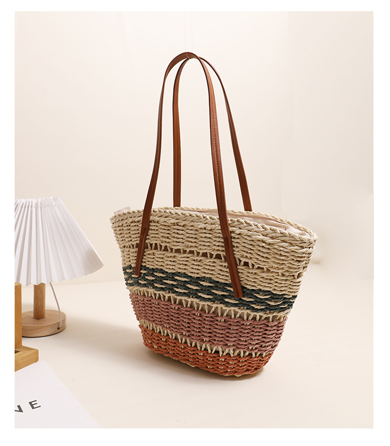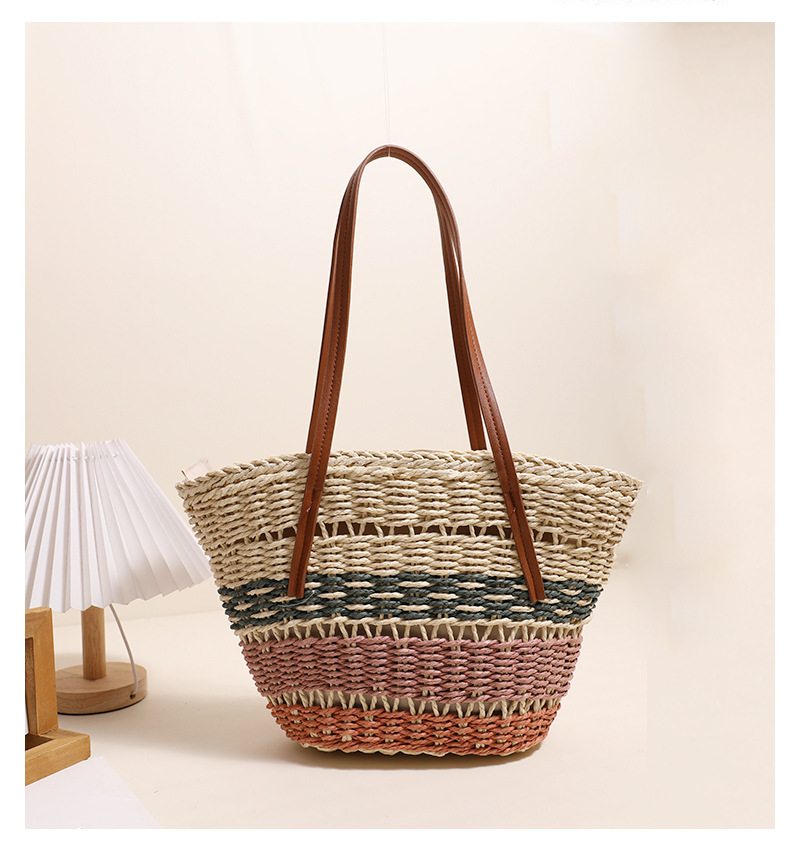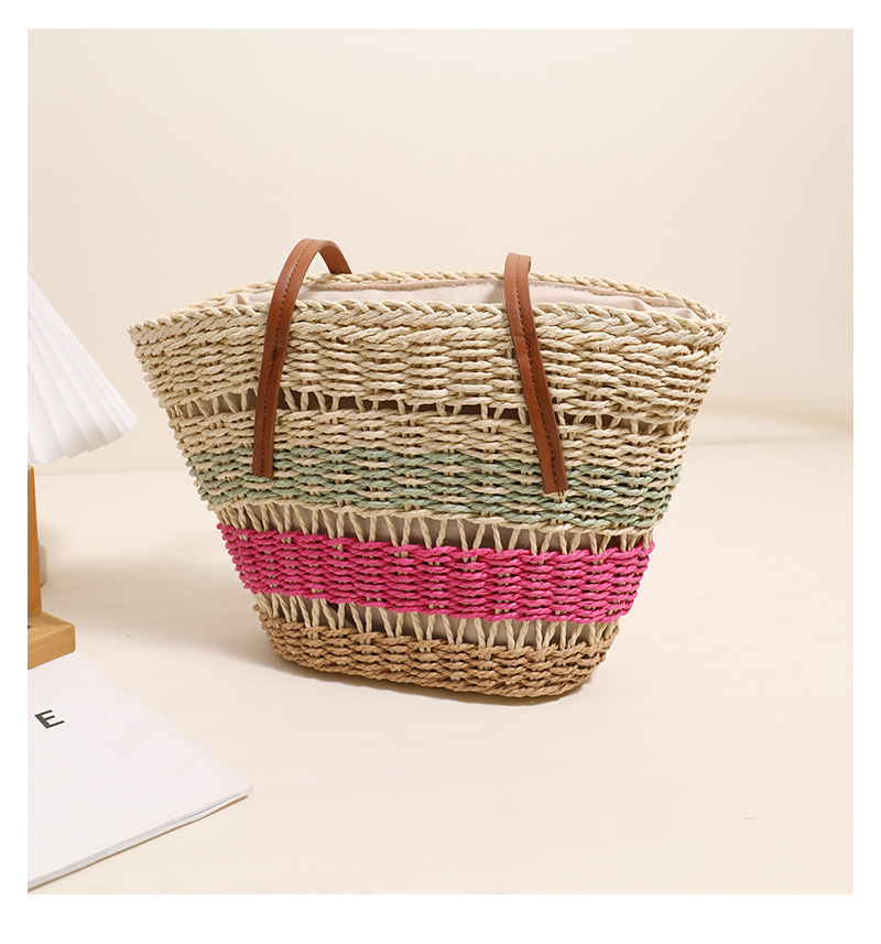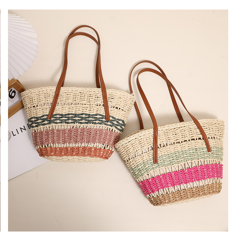 Colorful Striped Shoulder Straw Bag Large Capacity Straw Bag Woven Bag Rattan Women Bag Portable Vegetable Basket