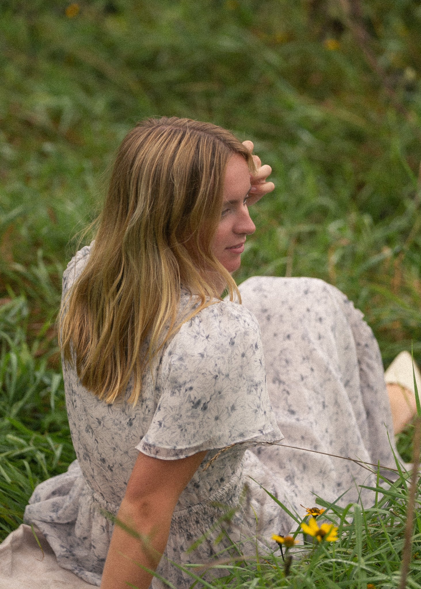 The Isabella Blue Floral V Neck Maxi Dress is an Inherit favorite, made to flatter with grace and ease. Designed in soft blue stripes, it features a modest v-neckline, flutter sleeves, and a smocked waist for a comfortable, feminine fit. This modest tiered maxi skirt moves beautifully, making this a lovely choice for Sunday mornings, weddings, or everyday elegance. Did we mention this dress is also lined?!