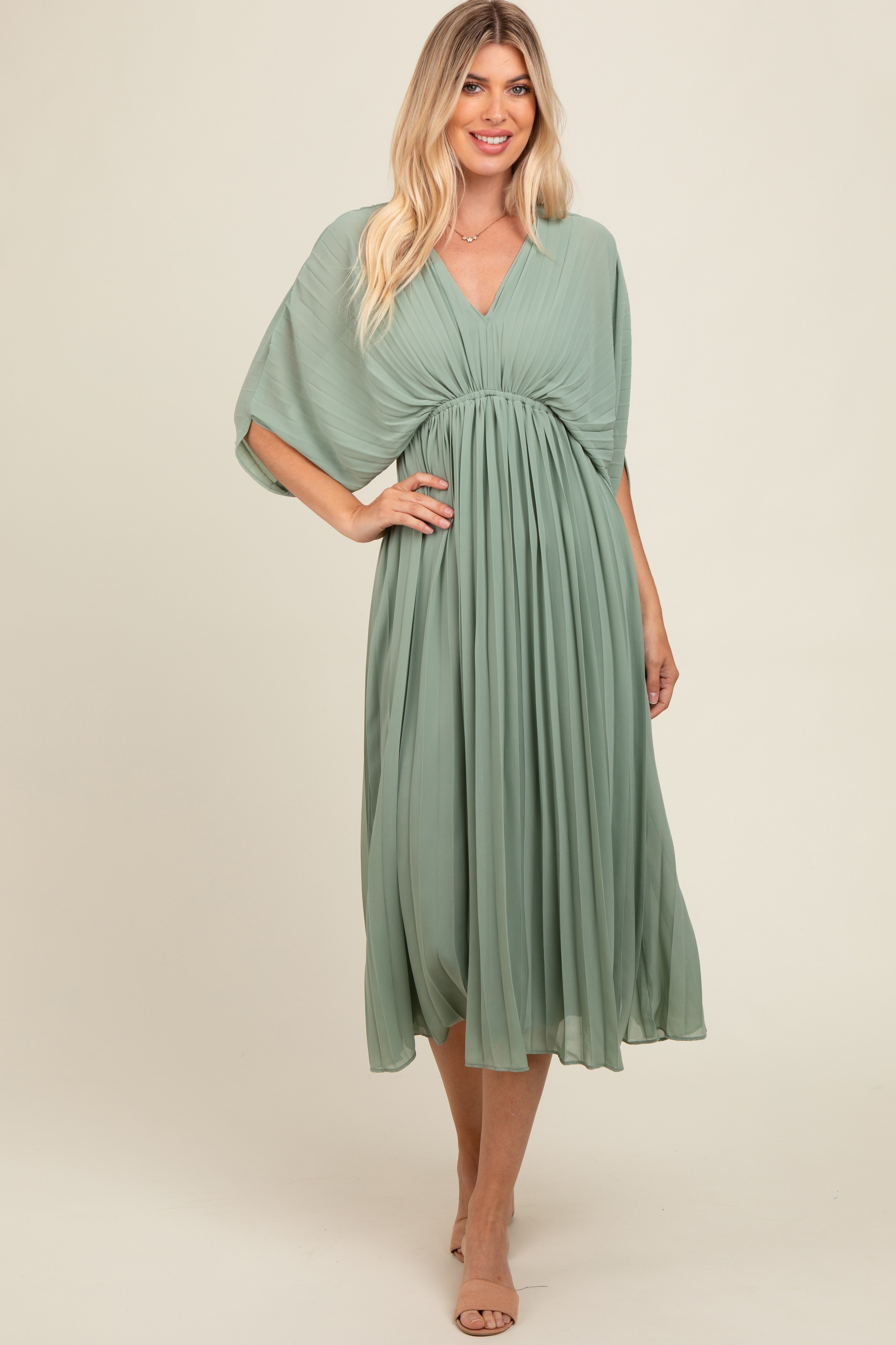 Step into effortless elegance with our Pleated V Neck Maternity Maxi Dress. Designed to flatter your growing bump, this chic maxi dress features a flattering V neckline and delicate pleating that drapes beautifully over every curve. The soft, stretchy fabric ensures all-day comfort while the sophisticated hue transitions seamlessly from casual outings to special occasions. Perfect for baby showers, brunch, or a night out, this maternity dress offers comfort, style, and versatility—so you always feel confident and radiant. Embrace every moment of motherhood in style!