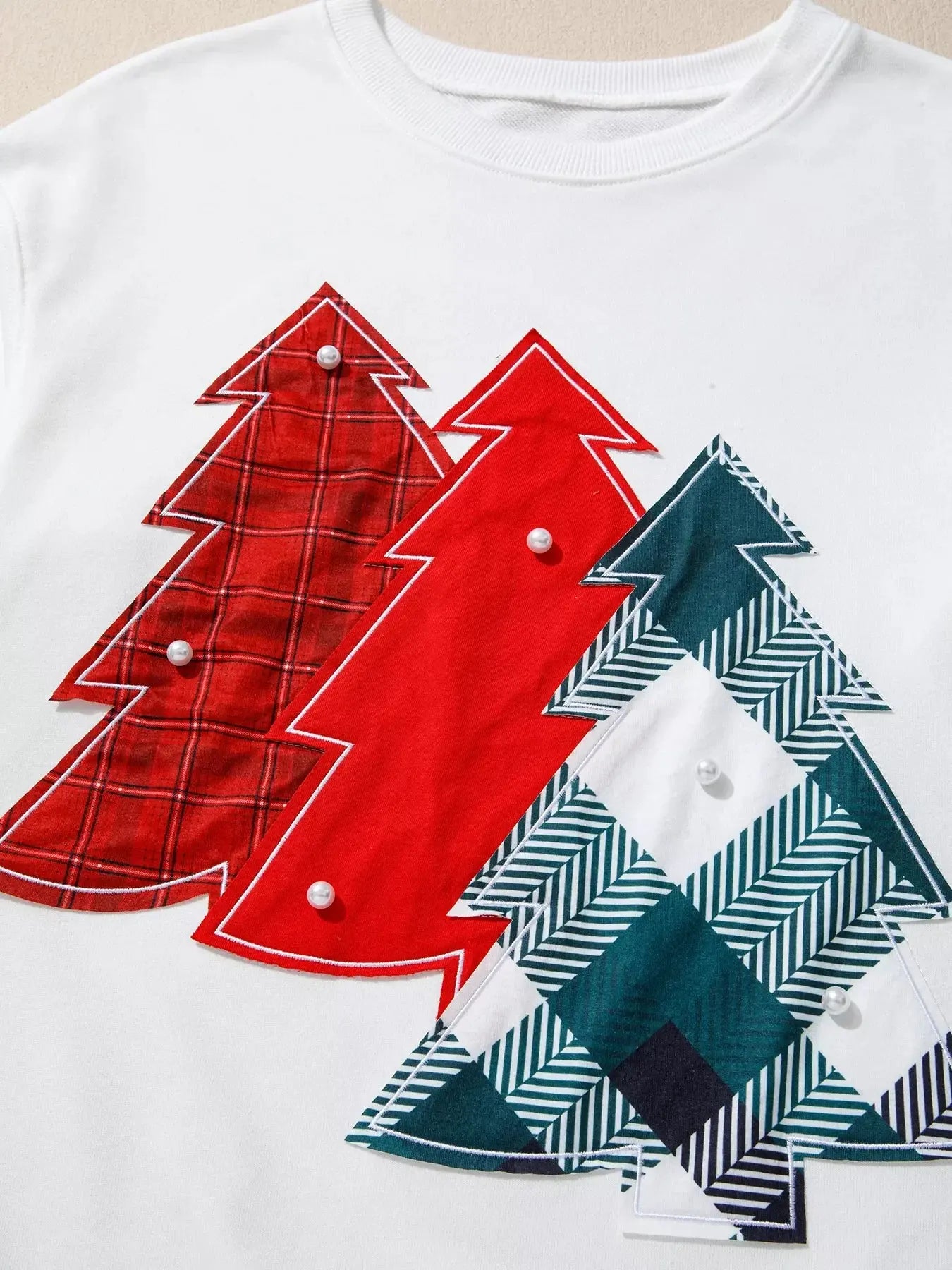Pearl Plaid Christmas Tree Patched Drop Shoulder Sweatshirt