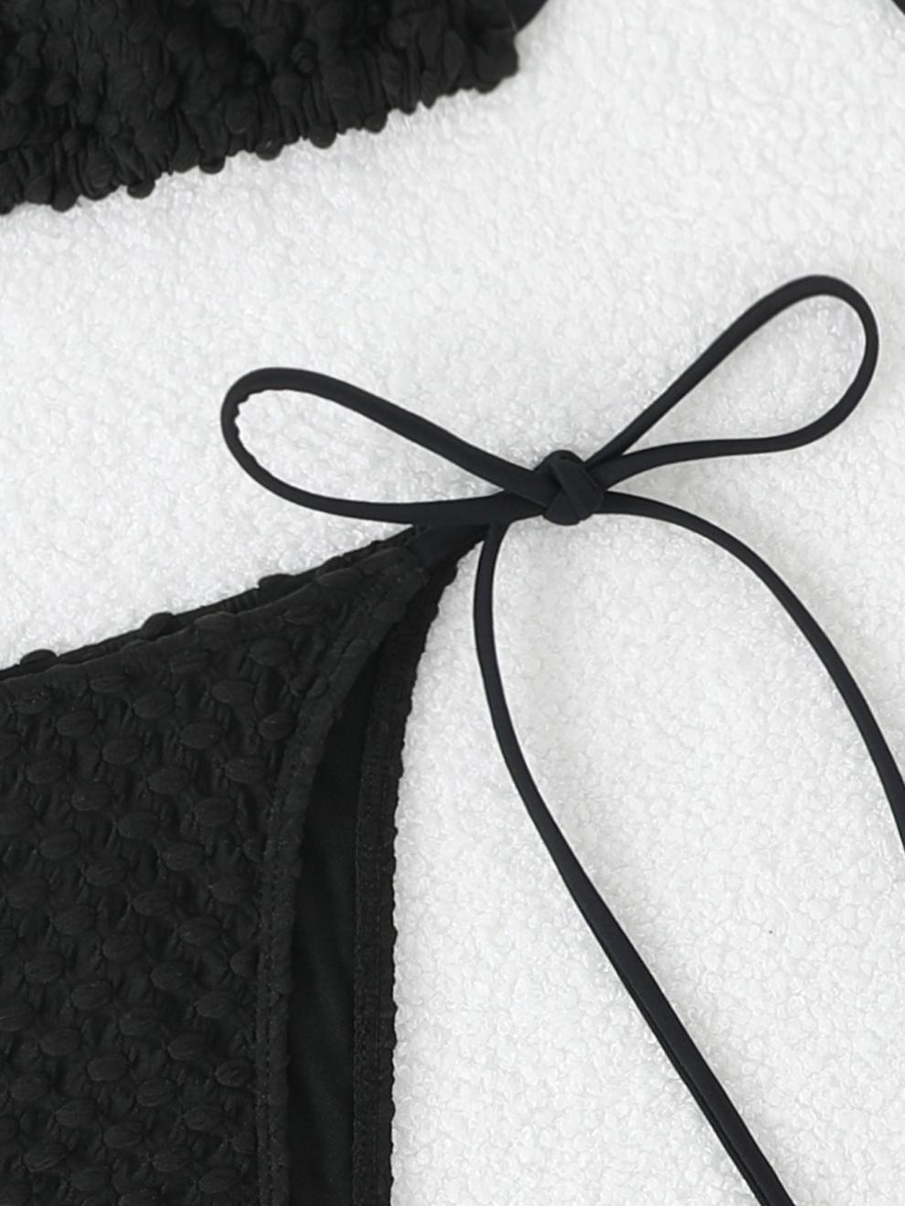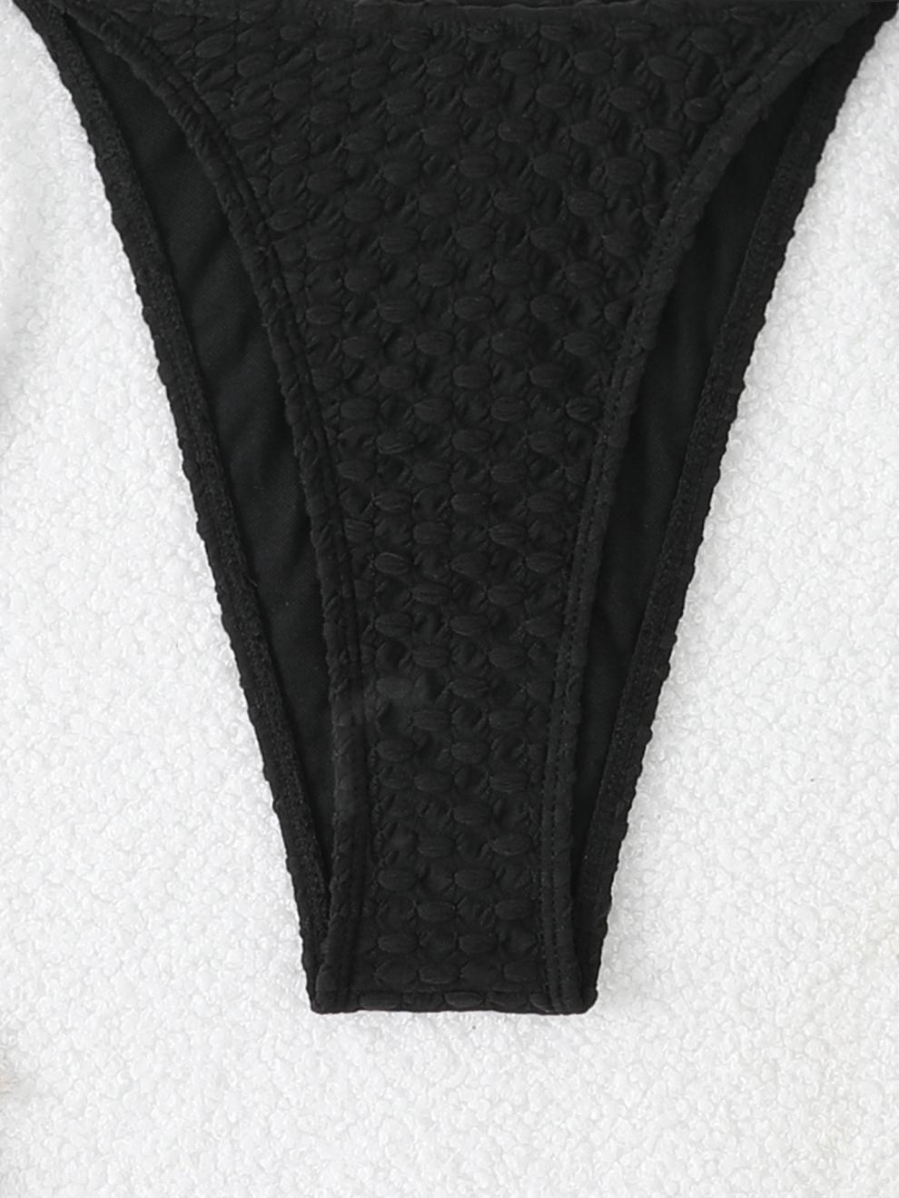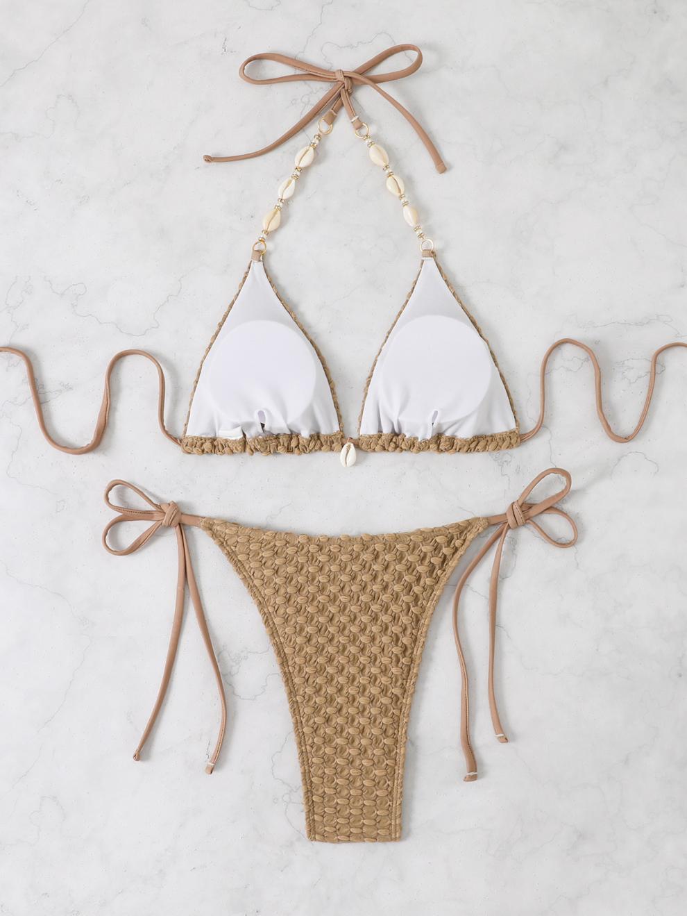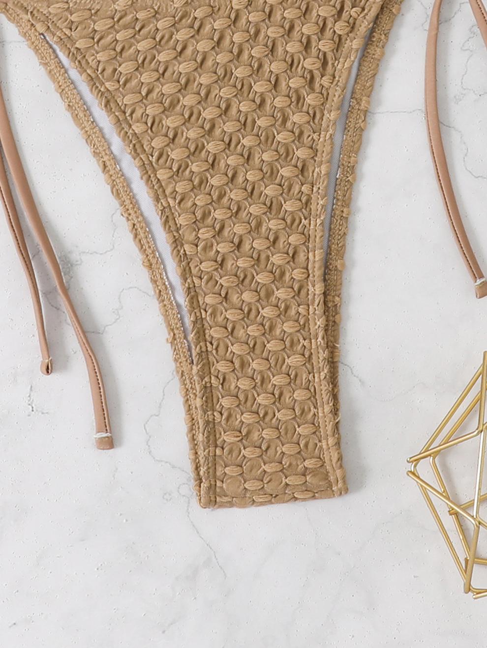 Solid Color Split Swimsuit Bikini High Grade Backless Deep V Plunge Sexy Wind Strap Design Three Point