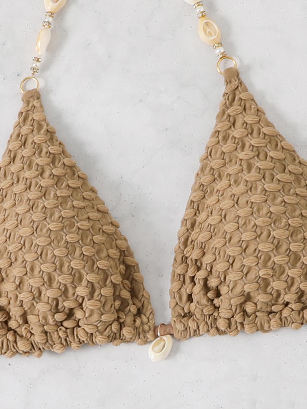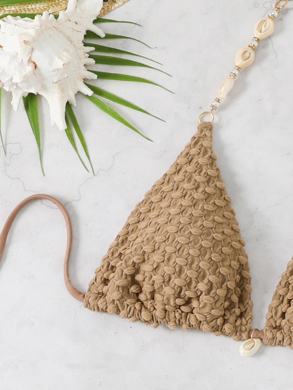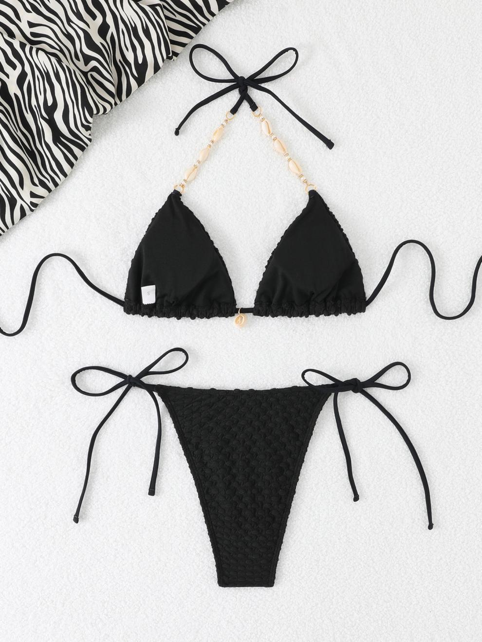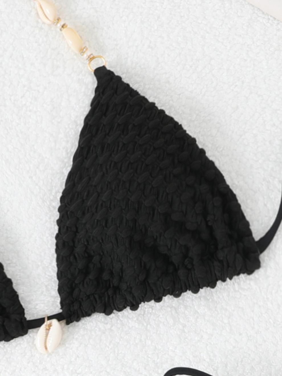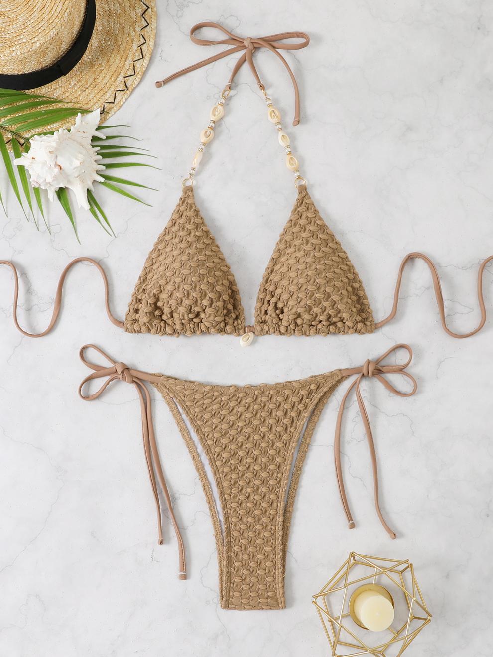 Solid Color Split Swimsuit Bikini High Grade Backless Deep V Plunge Sexy Wind Strap Design Three Point