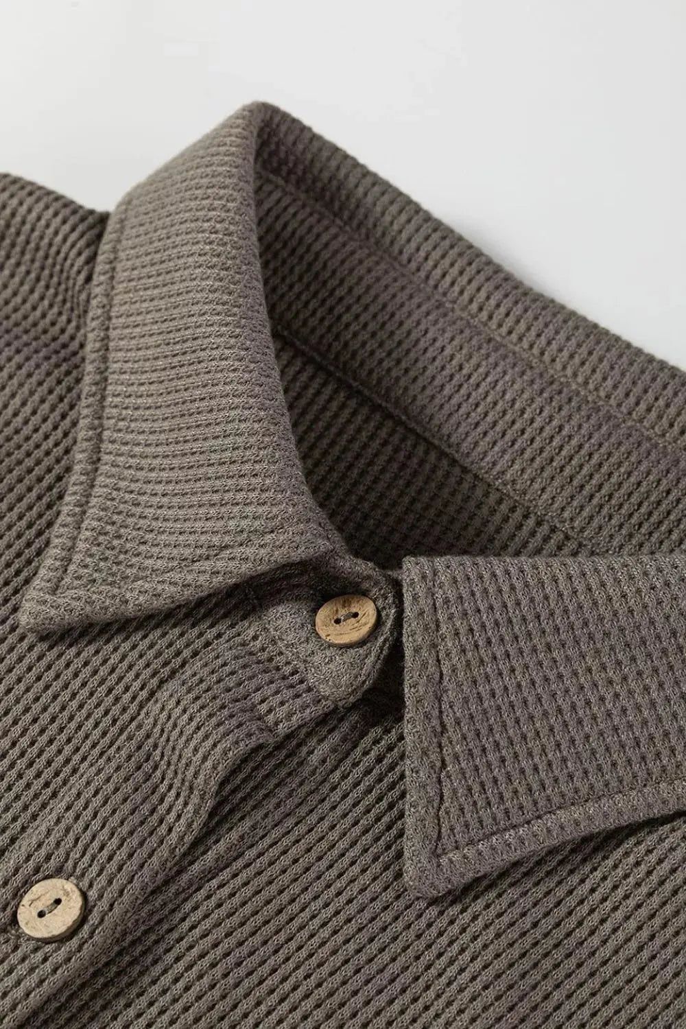 - Features:Waffle-Knit,Pocketed,Buttoned