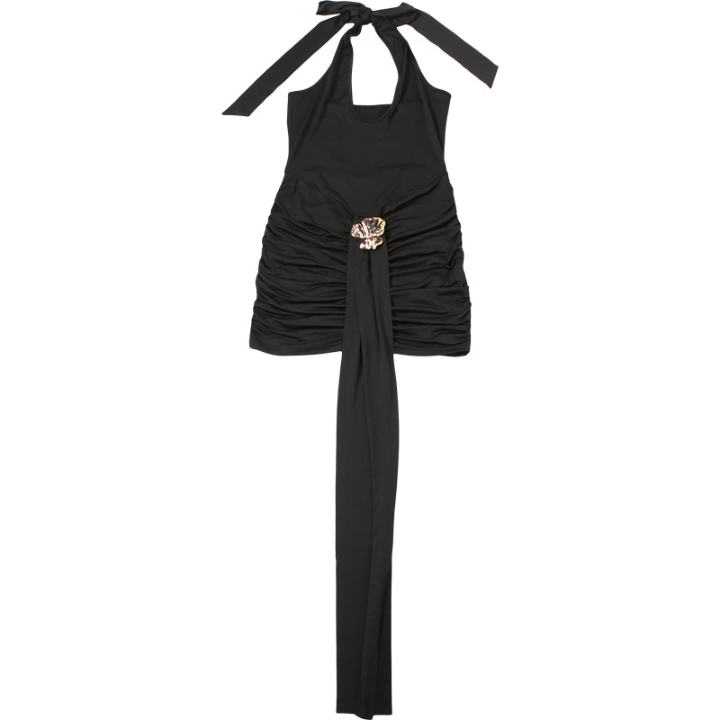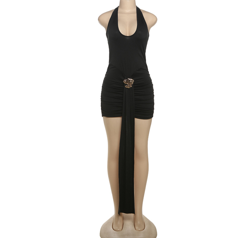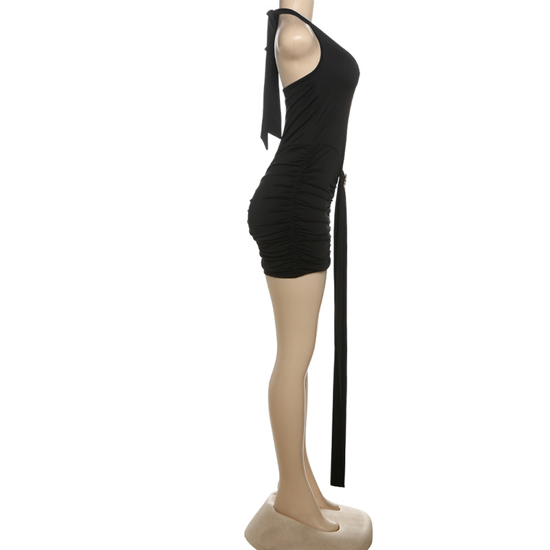 Summer Women Clothing Sexy Halter Hollow Out Cutout Slim Fit Slim Backless Ruffle Hip Dress