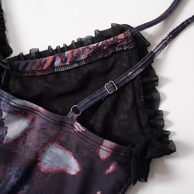 Women Clothing Hollow Out Cutout Camisole Pleated Lace Double Layer Dress