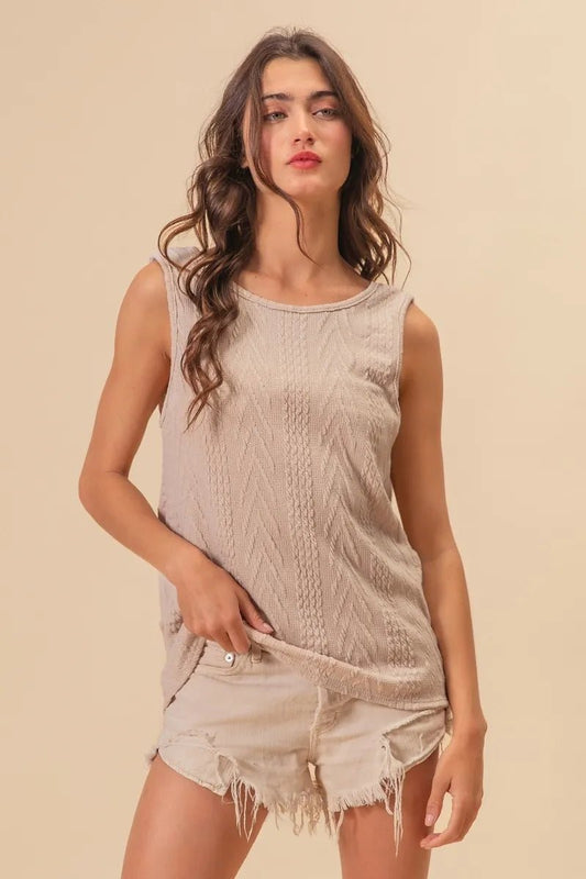 BiBi Textured Sweater Knit Twist Back Sleeveless Top - Love Salve