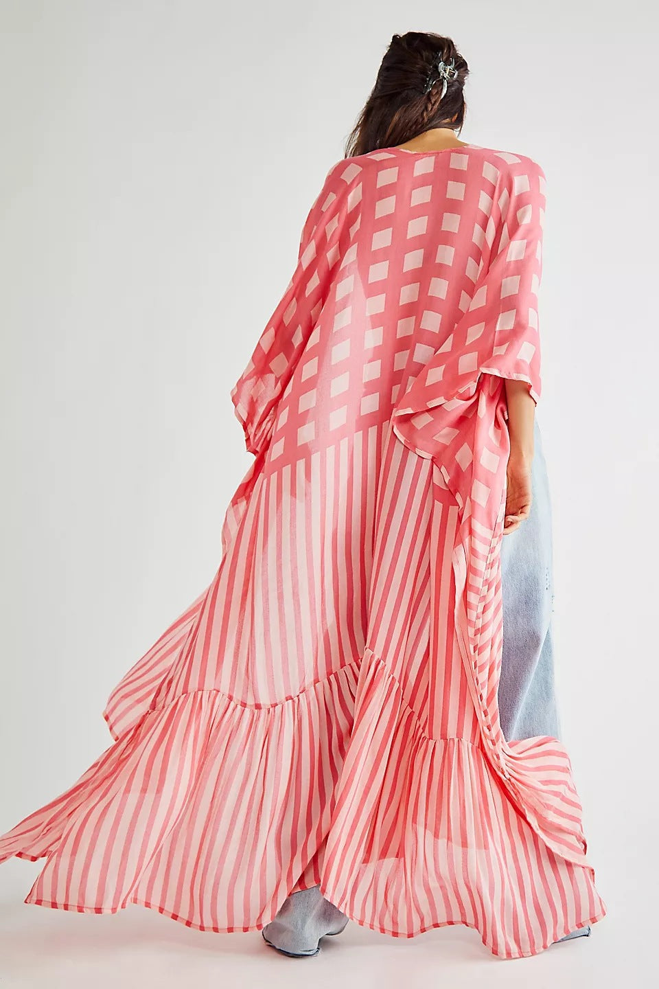 Rayon plaid vertical print cardigan holiday casual beach bikini cover attached rope