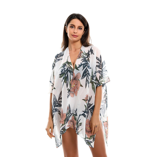 Spring Summer Floral Print All Match Bikini Sun Protective Blouse