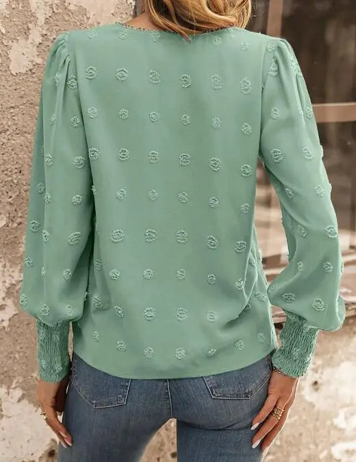 Swiss Dot Lantern Sleeve Blouse
