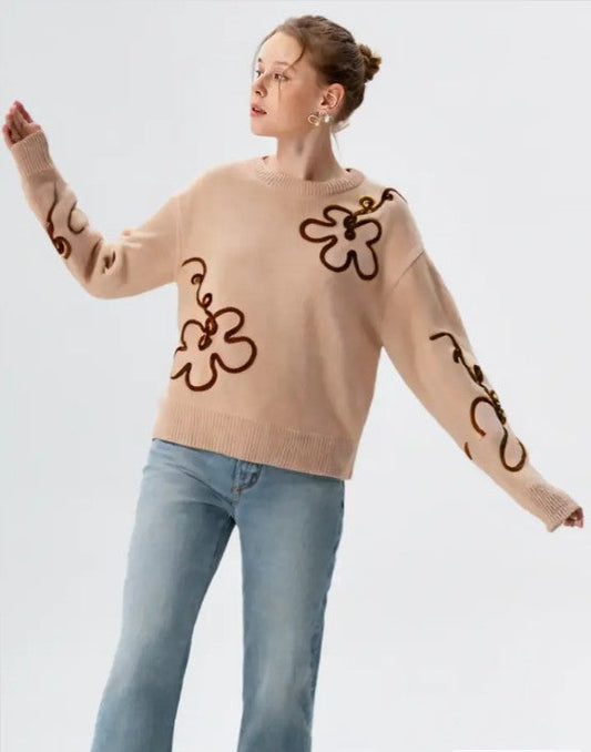 Floral Pattern Knit Sweater
