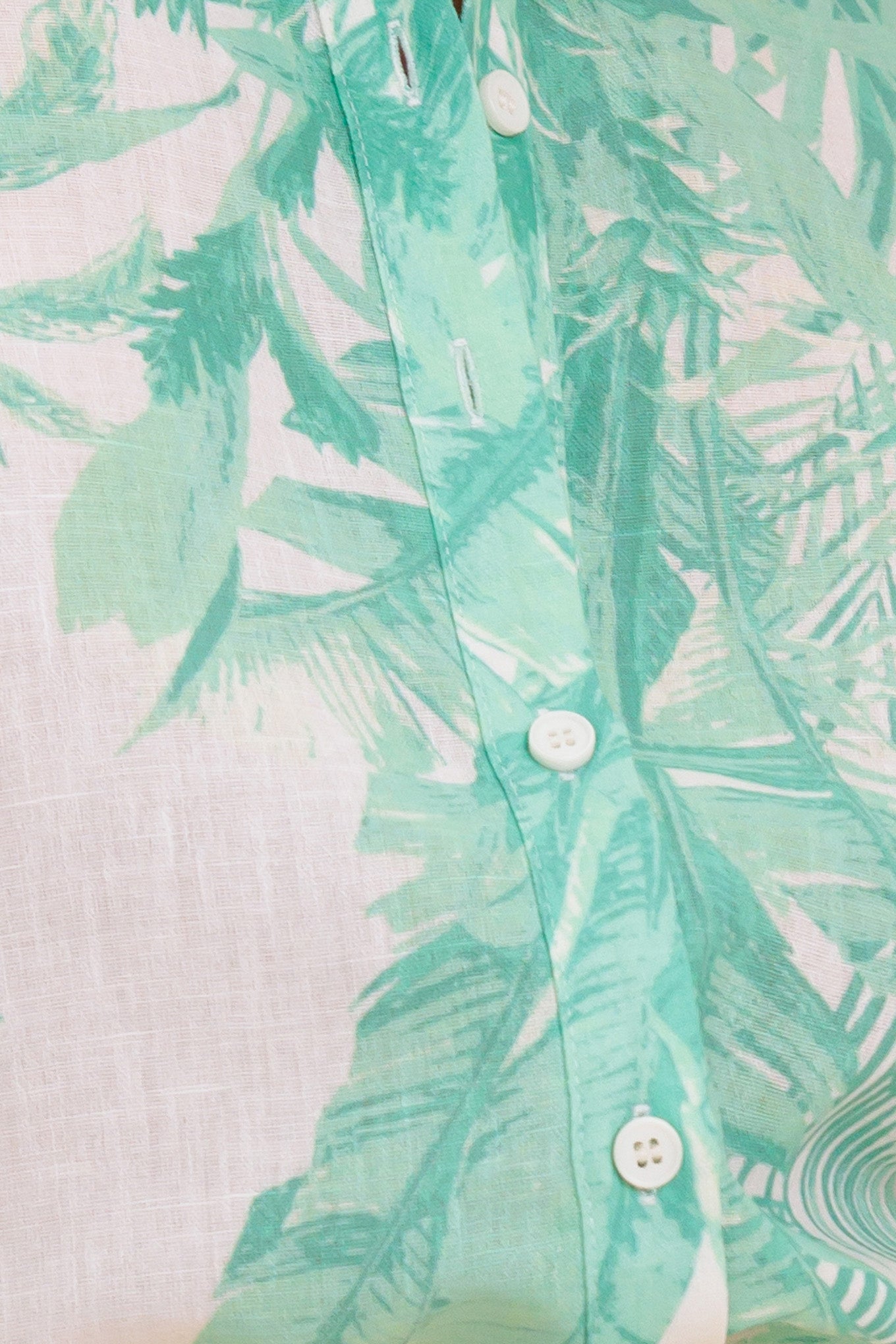 Fabric details: Self and lining are 100% polyester. The mint green palm leaf print is set on a white base, offering a fresh, airy look.