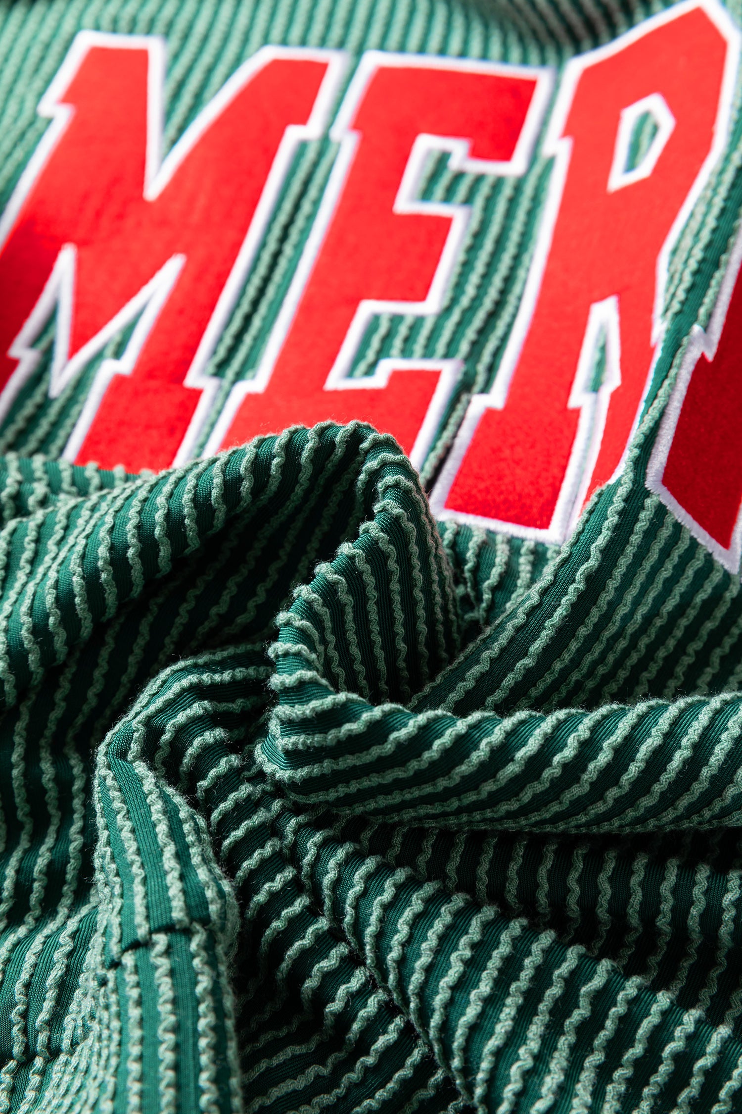 Dark Green Merry Corded Long Sleeve Top and Pockets Pants Set