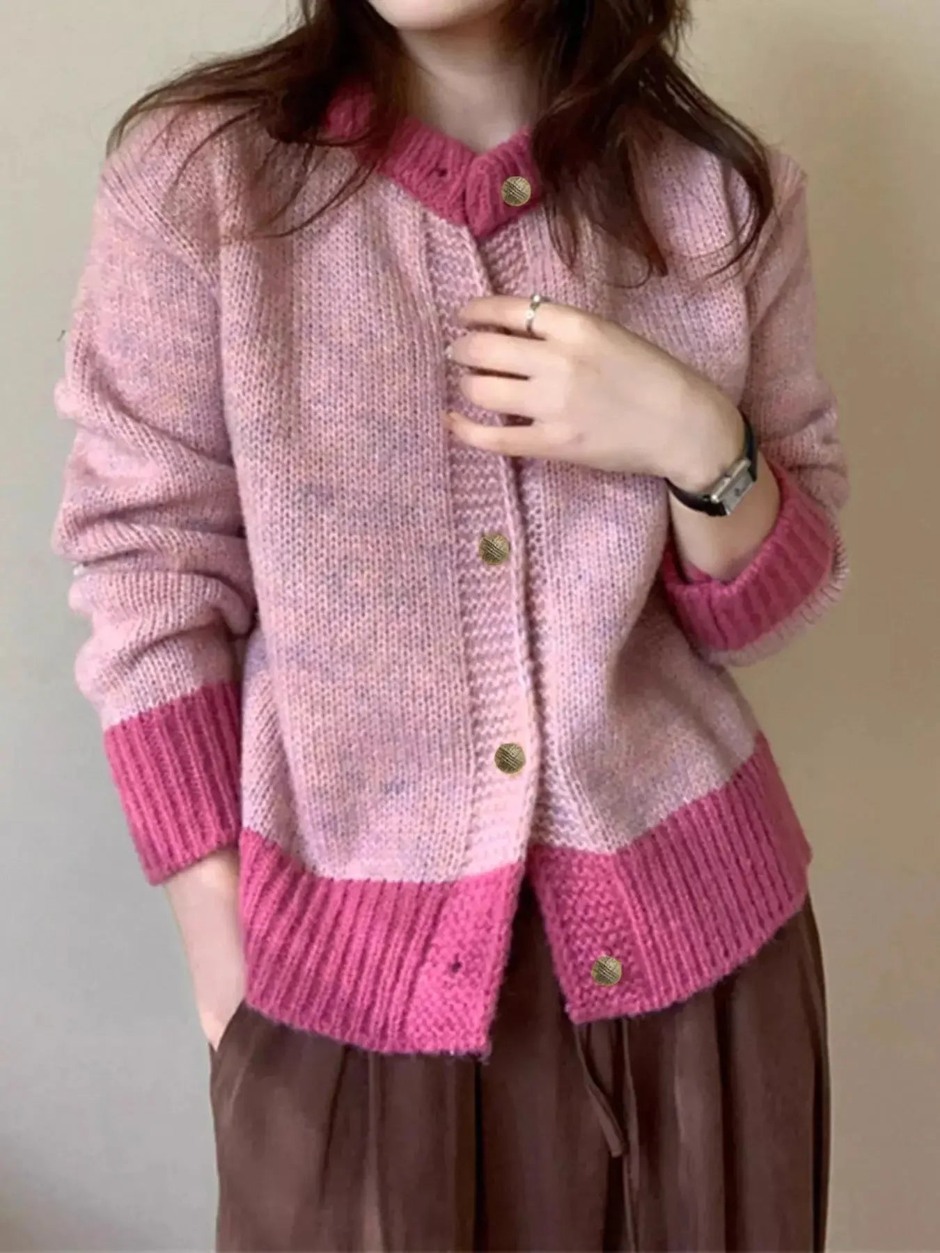 Color Block Button Up Cardigan