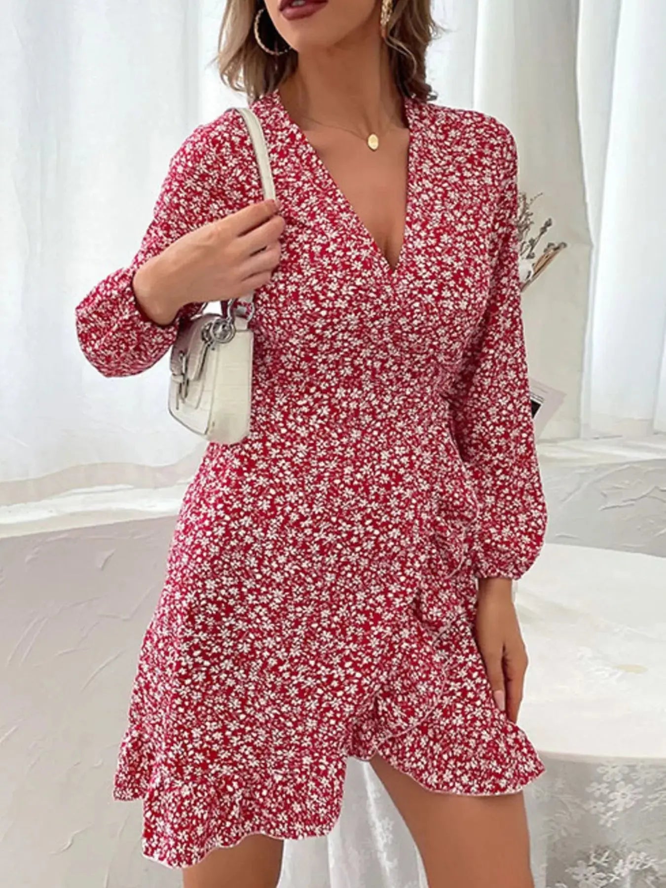 - Features:Ruffled,Tied