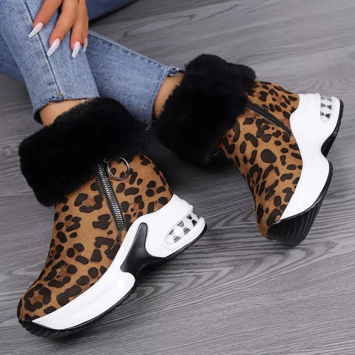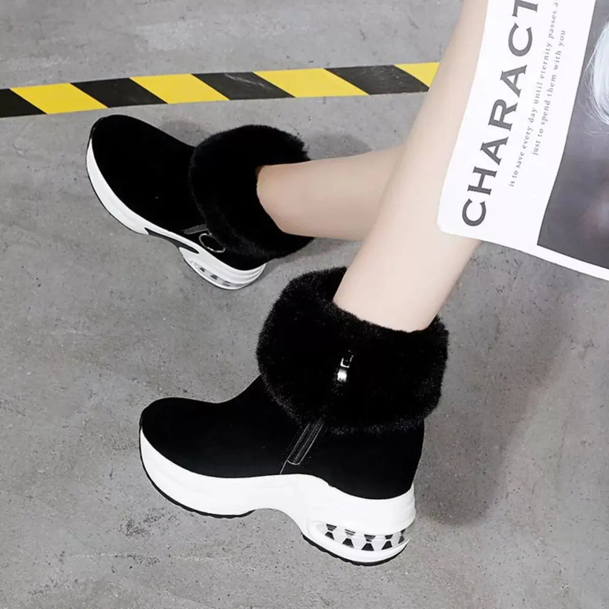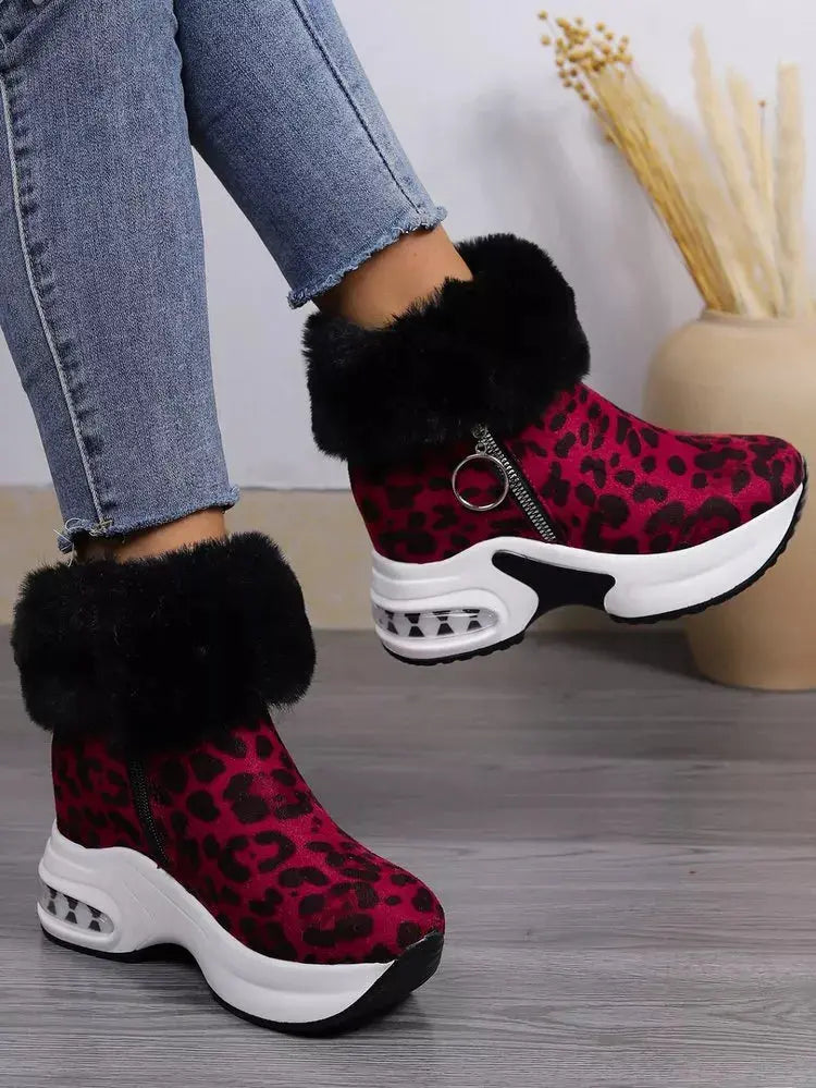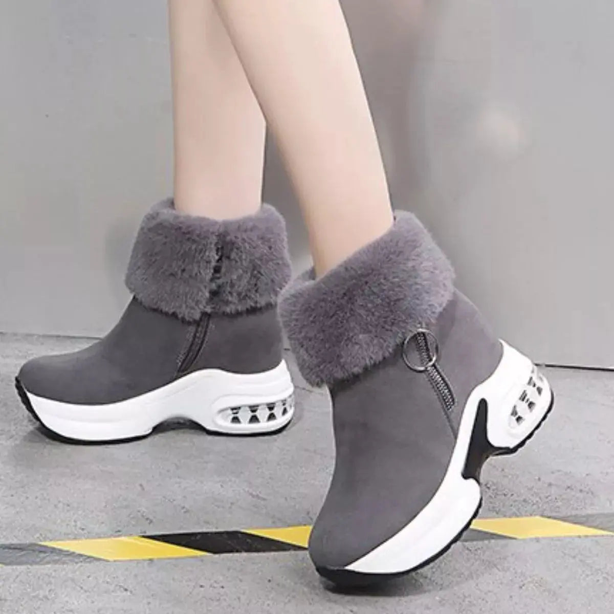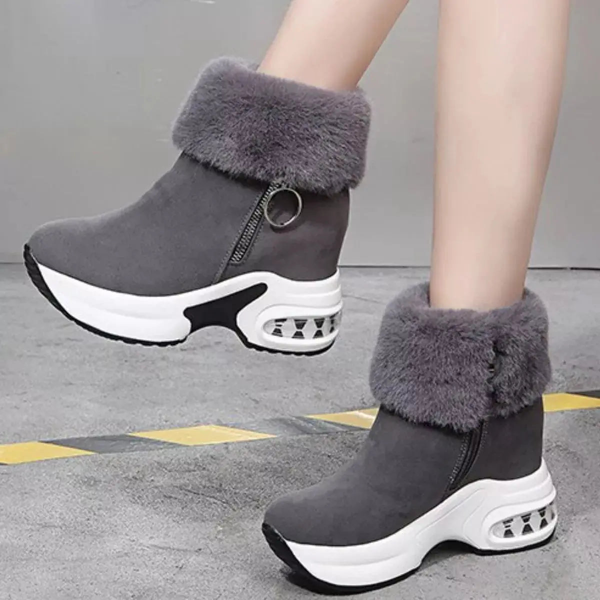Fuzzy Side Zipper Platform Ankle Boots