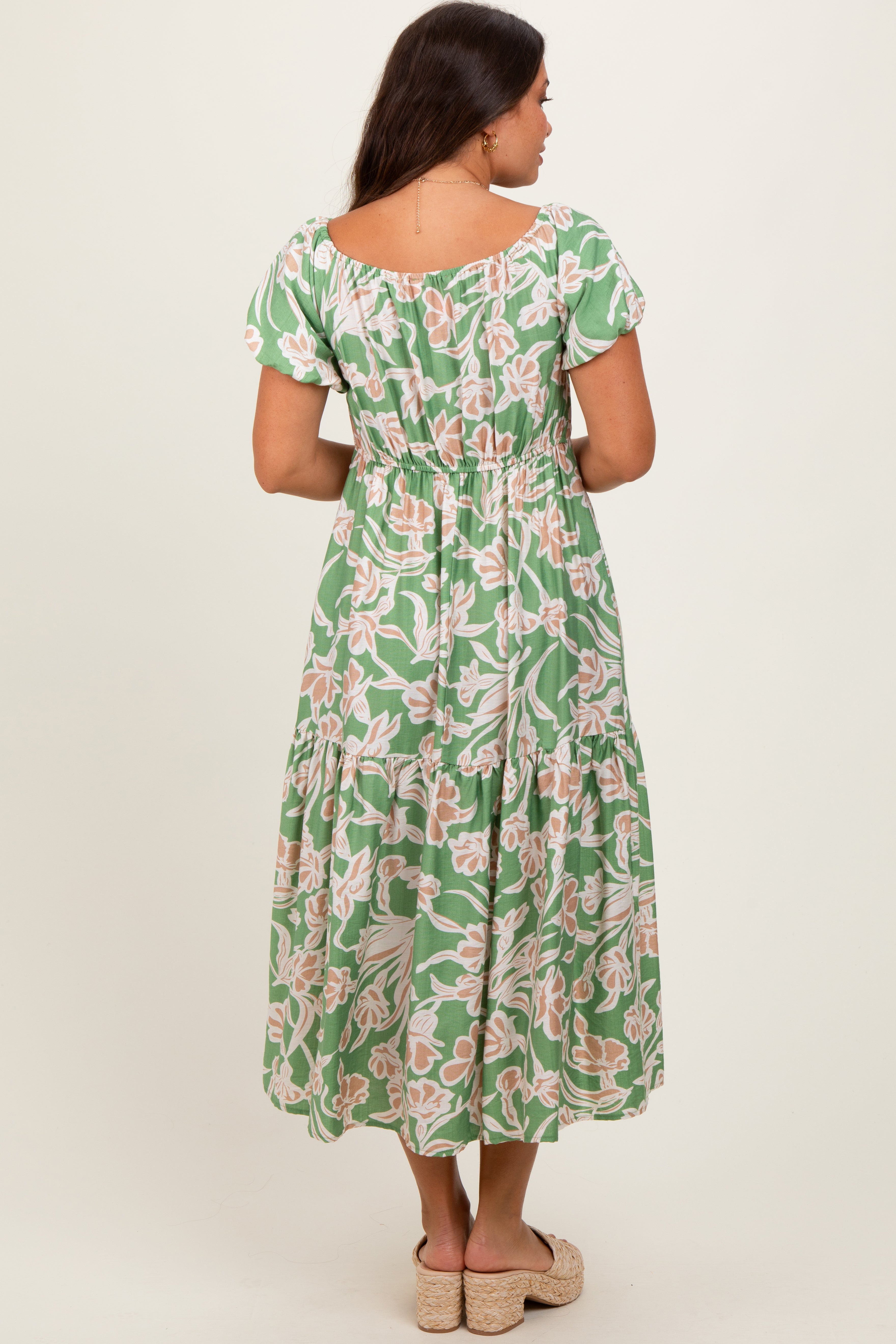 Green Floral Front Tie Maternity Midi Dress