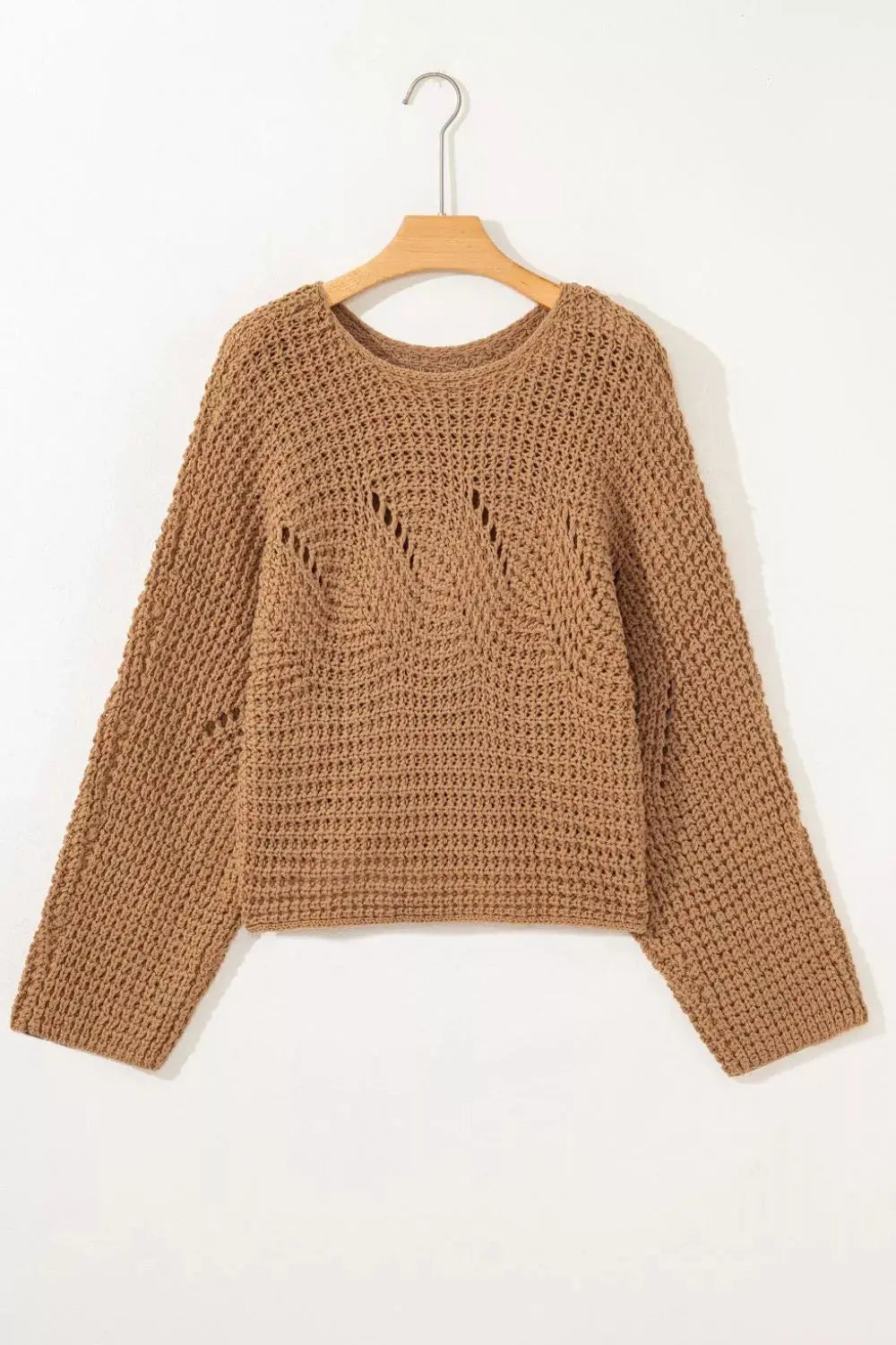 Hollowed Detail Wide Sleeve Loose Pullover Sweater Simply Love