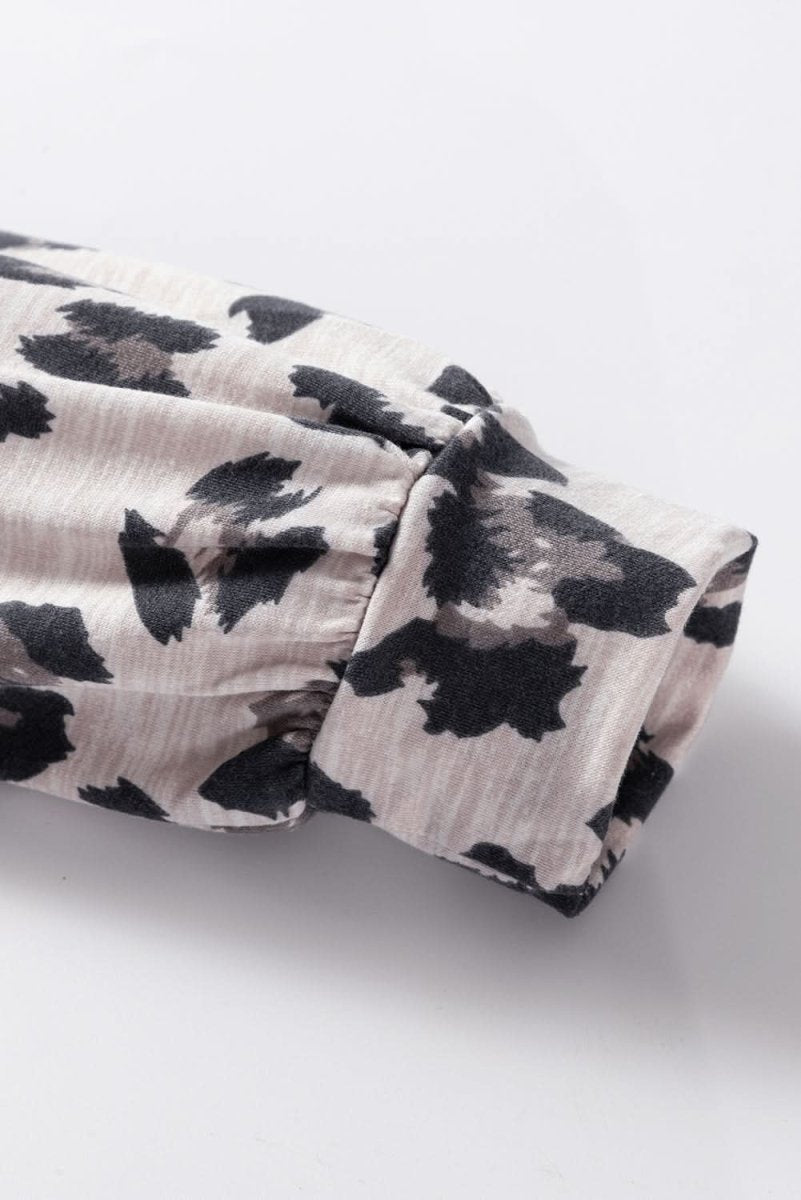 Khaki Leopard Print Drawstring Hoodie and Skinny Pants Lounge Set - Love Salve