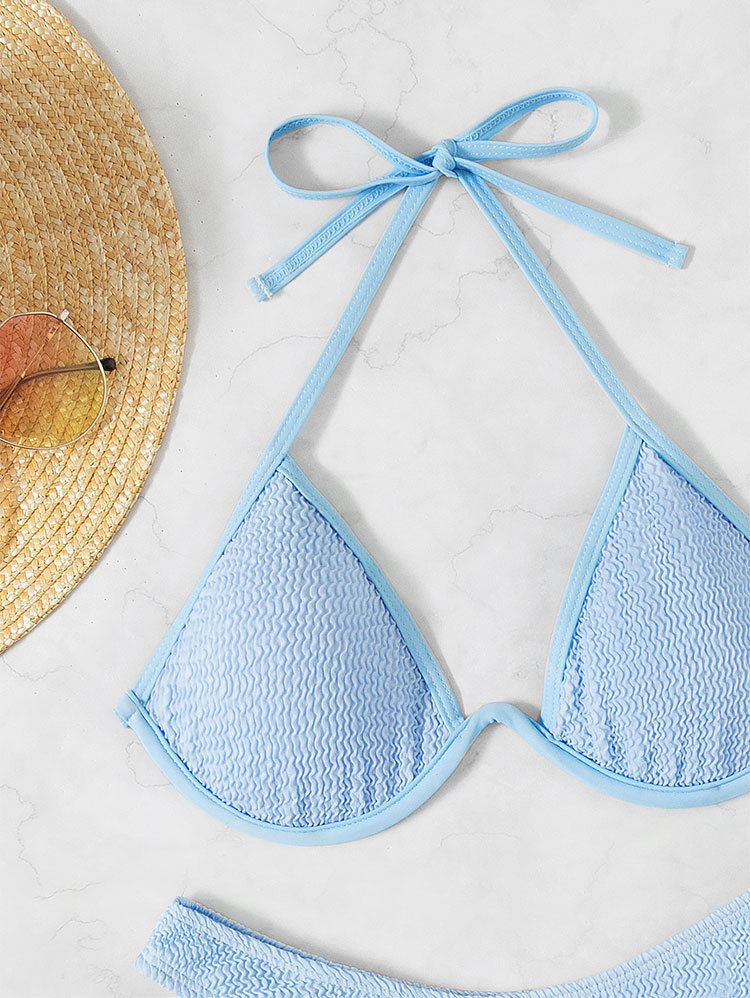 Lace up Backless Beach Bikini Multicolor Steel Bracket Triangle Split Swimsuit Swimwear