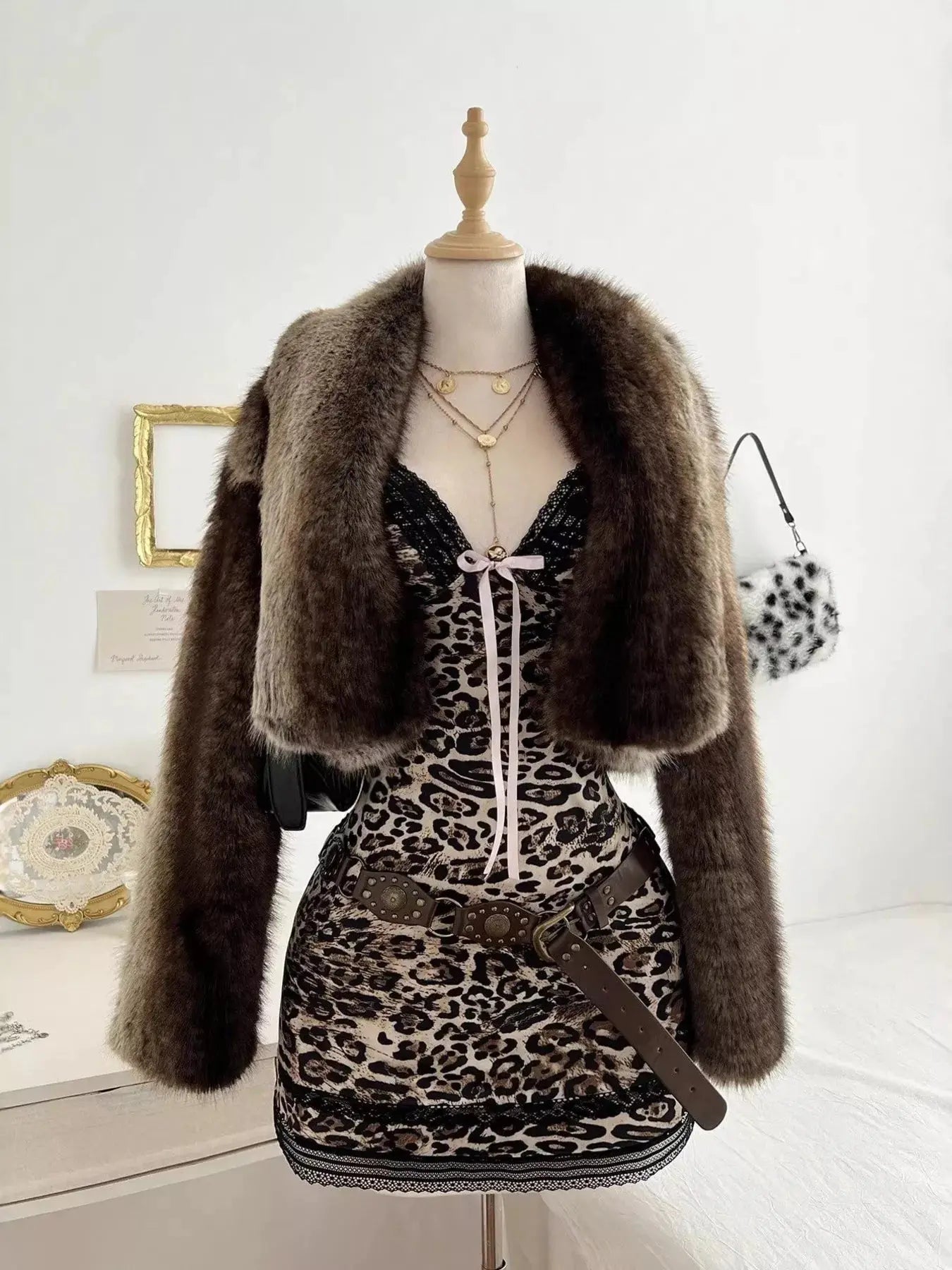Leopard Print Lace Trim Mini Dress