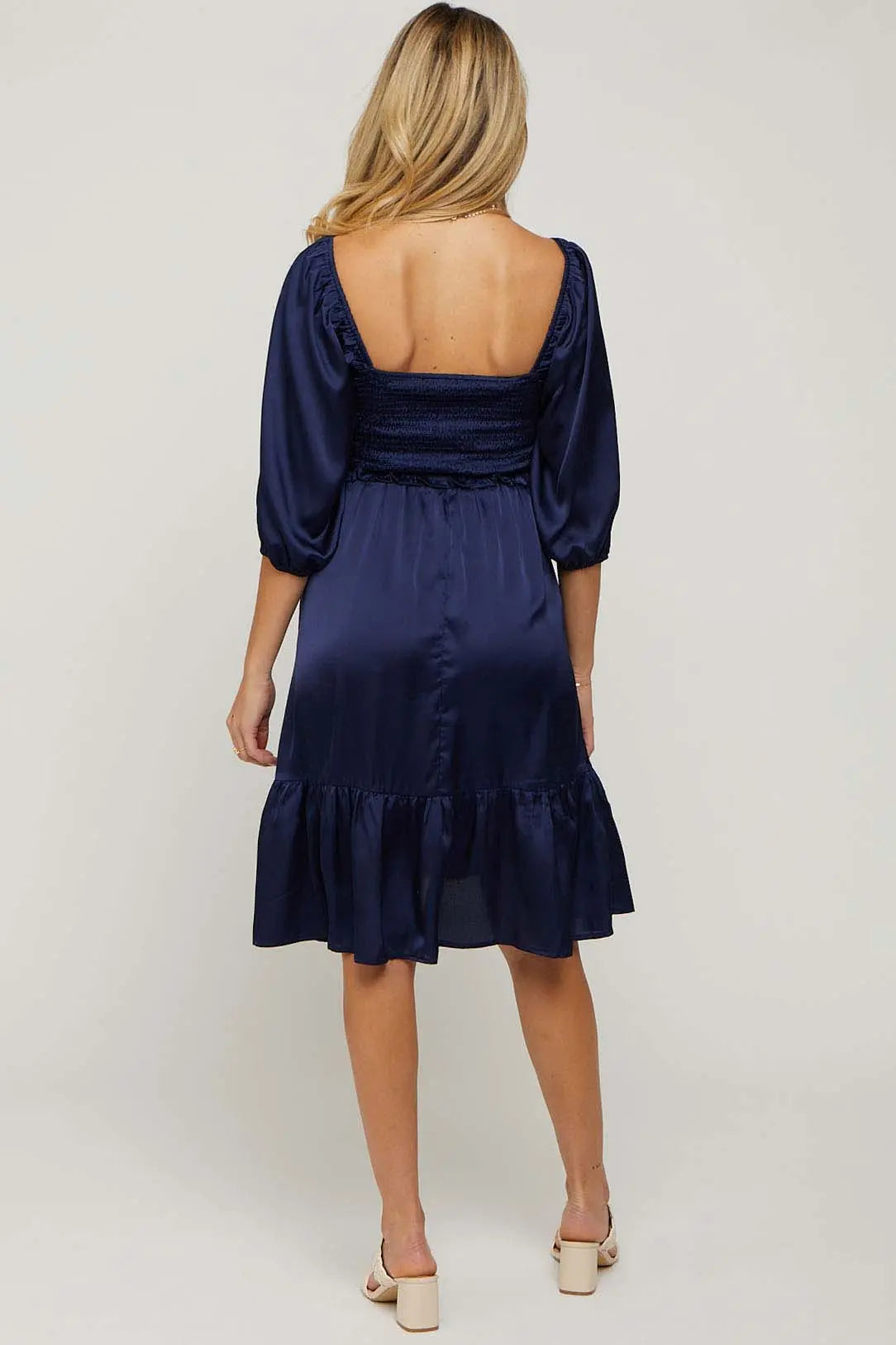 Turn heads with our Satin Smocked Ruffle Hem Maternity Dress – the perfect blend of comfort and elegance for any stage of your pregnancy. This dress features a soft, silky satin finish and a flattering smocked bodice that adapts to your growing bump. The feminine ruffle hem adds just the right amount of flair, while the relaxed fit ensures all-day comfort. Whether you’re attending a baby shower, a special event, or simply want to feel beautiful, this dress is a must-have addition to your maternity wardrobe. Style with sandals or heels for a polished, timeless look!