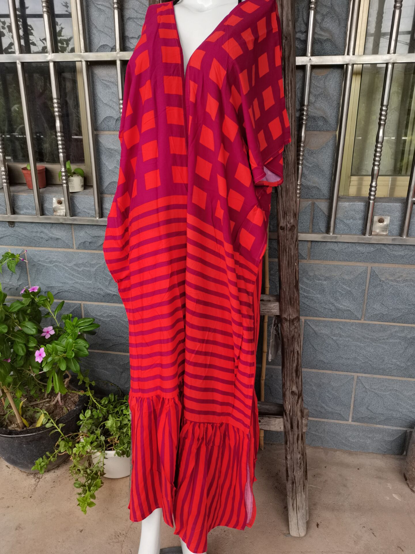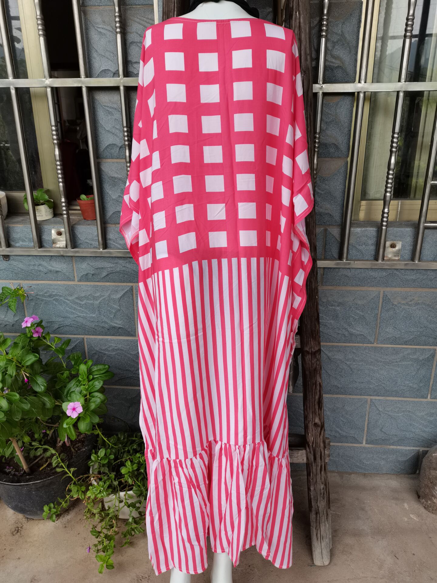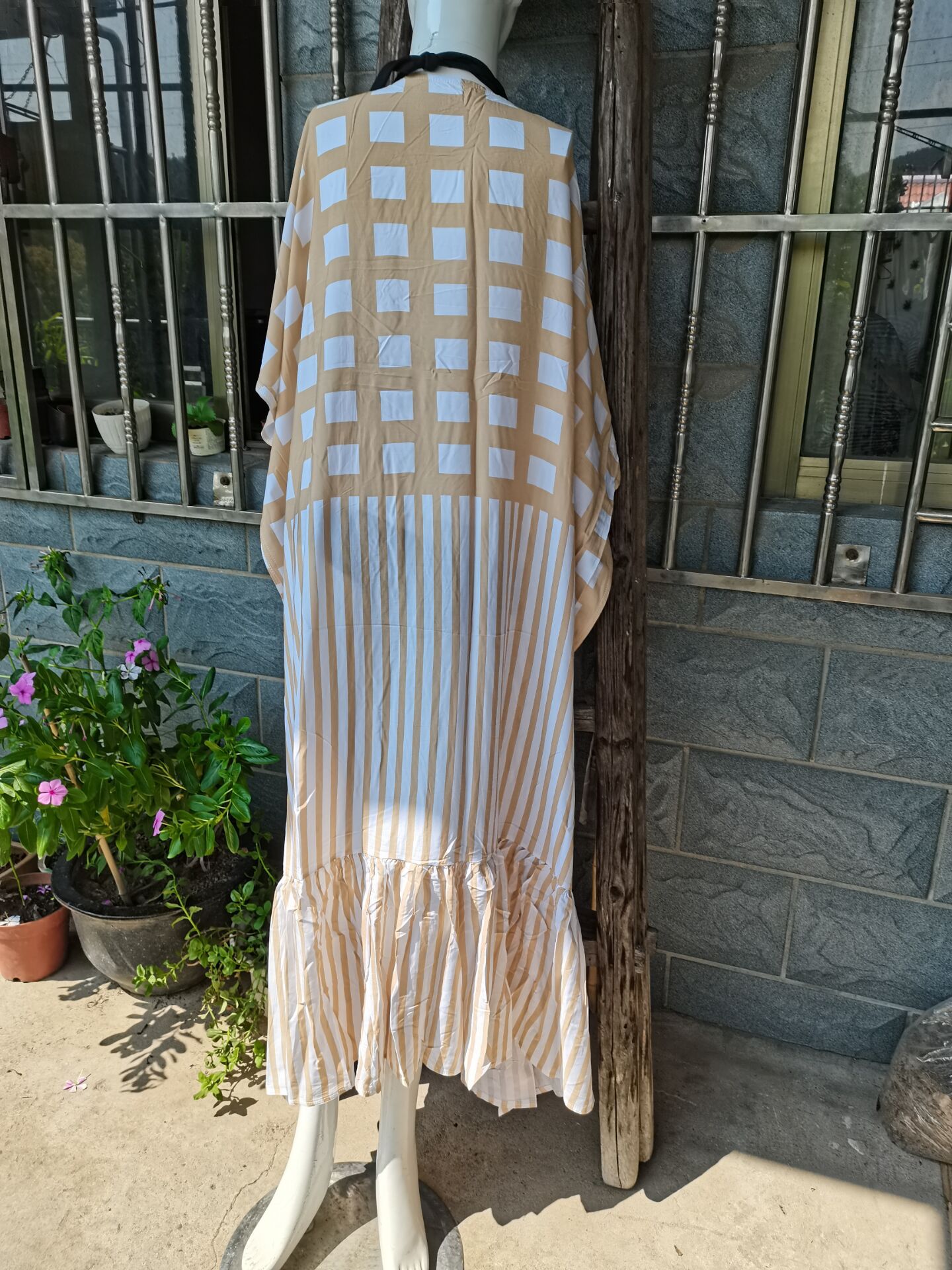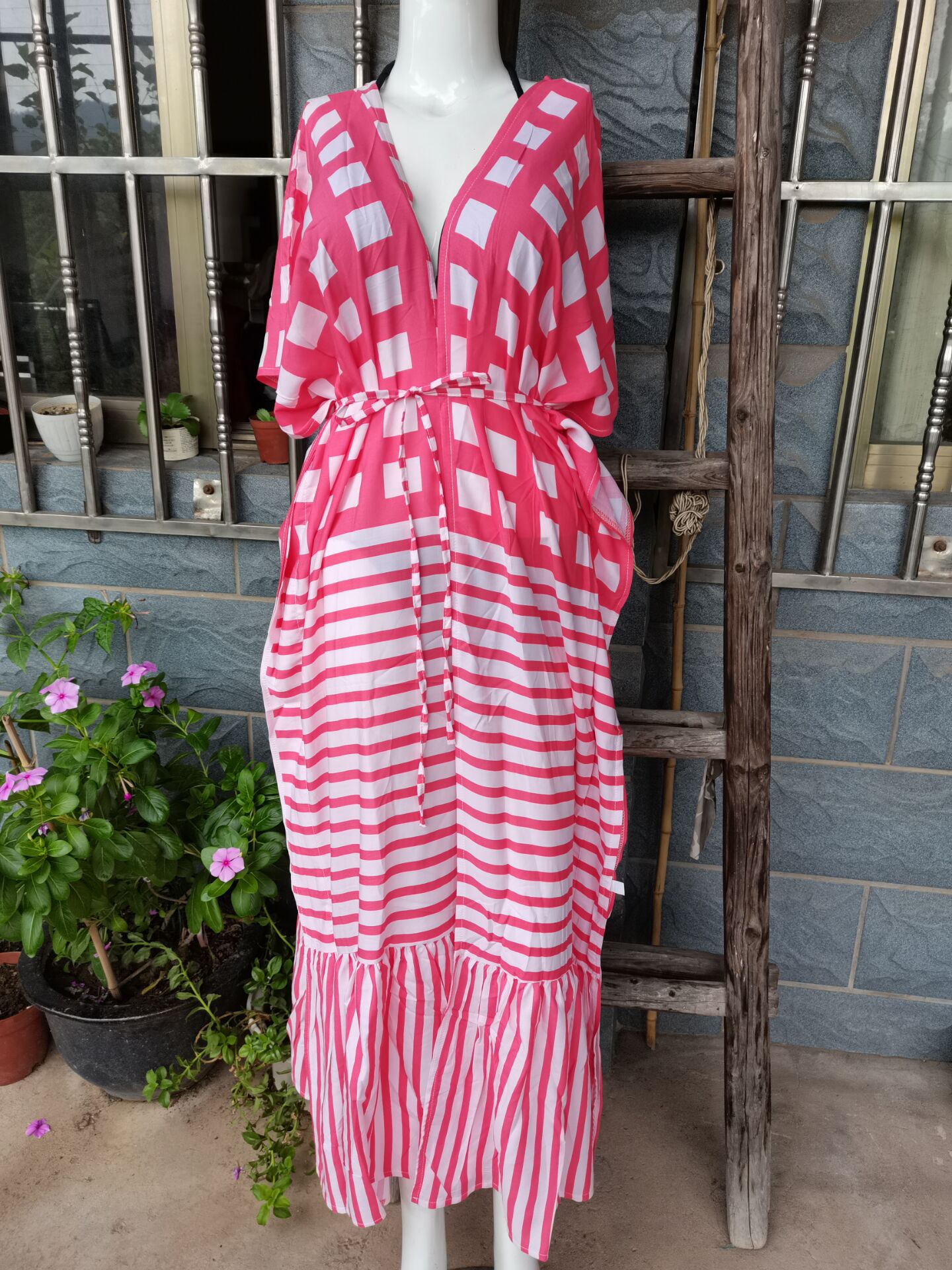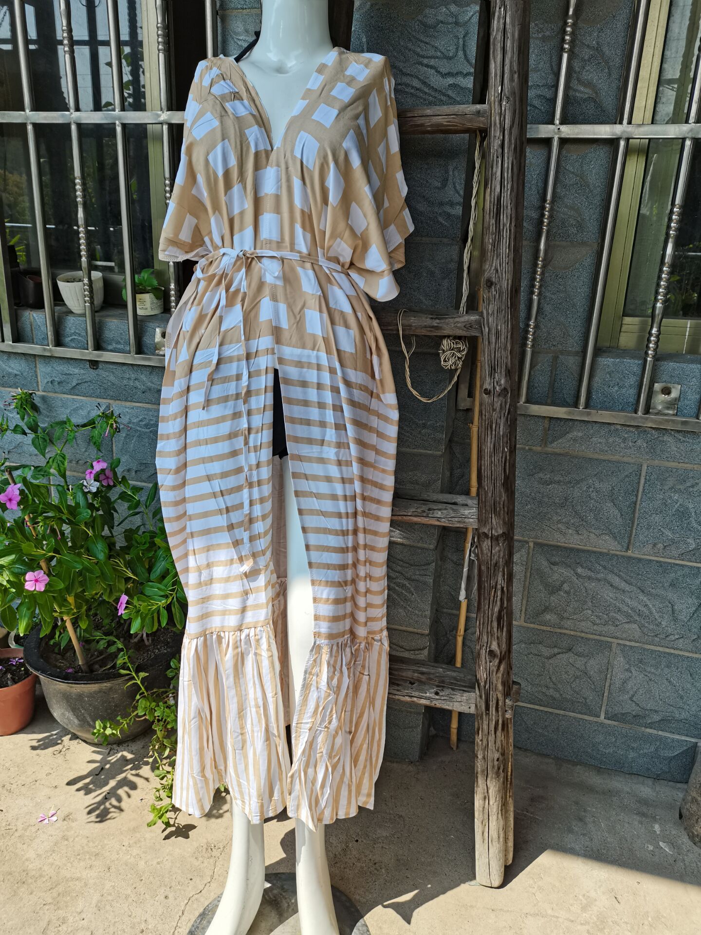 Rayon Plaid Vertical Print Cardigan Holiday Casual Beach Bikini Cover Attached Rope