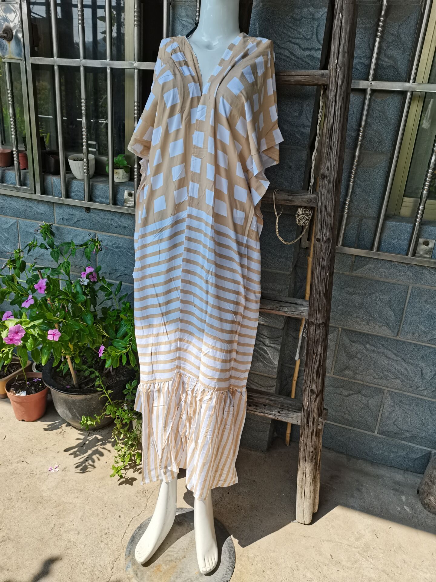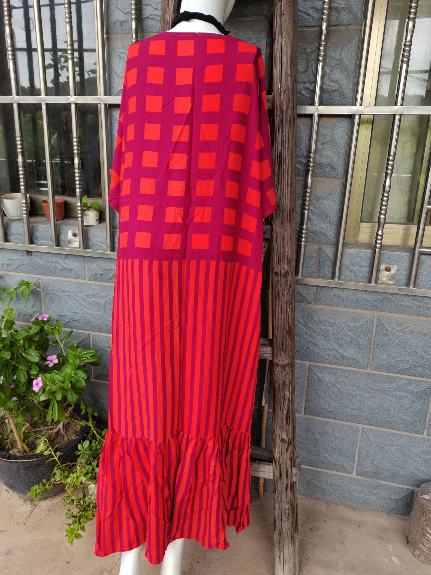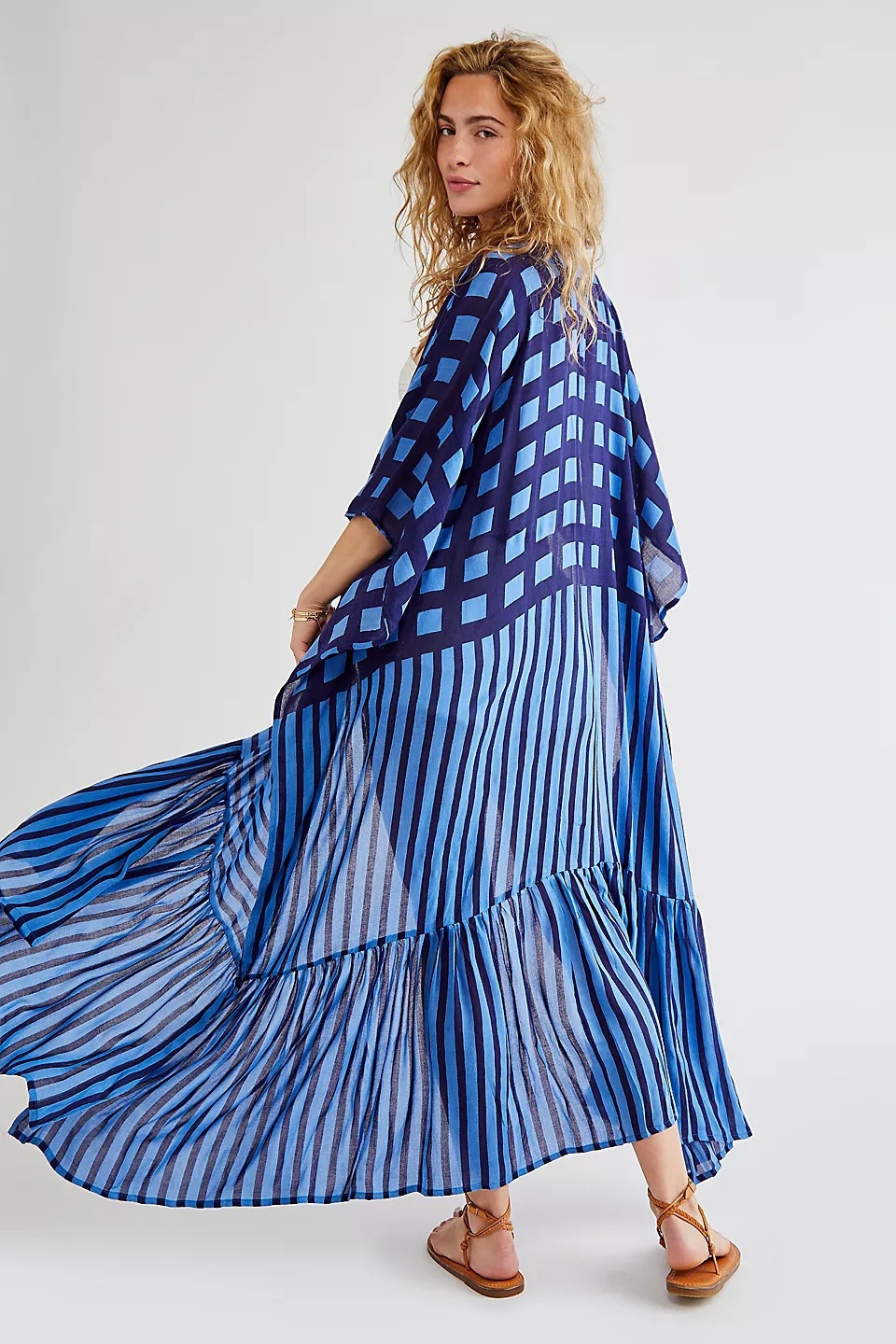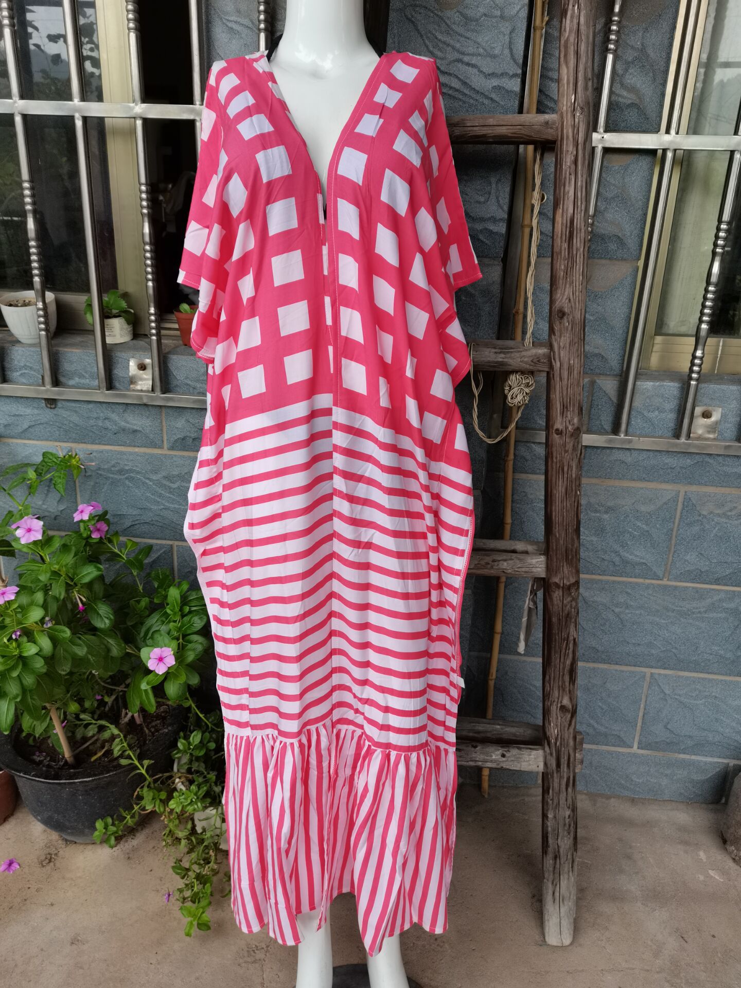 Rayon Plaid Vertical Print Cardigan Holiday Casual Beach Bikini Cover Attached Rope