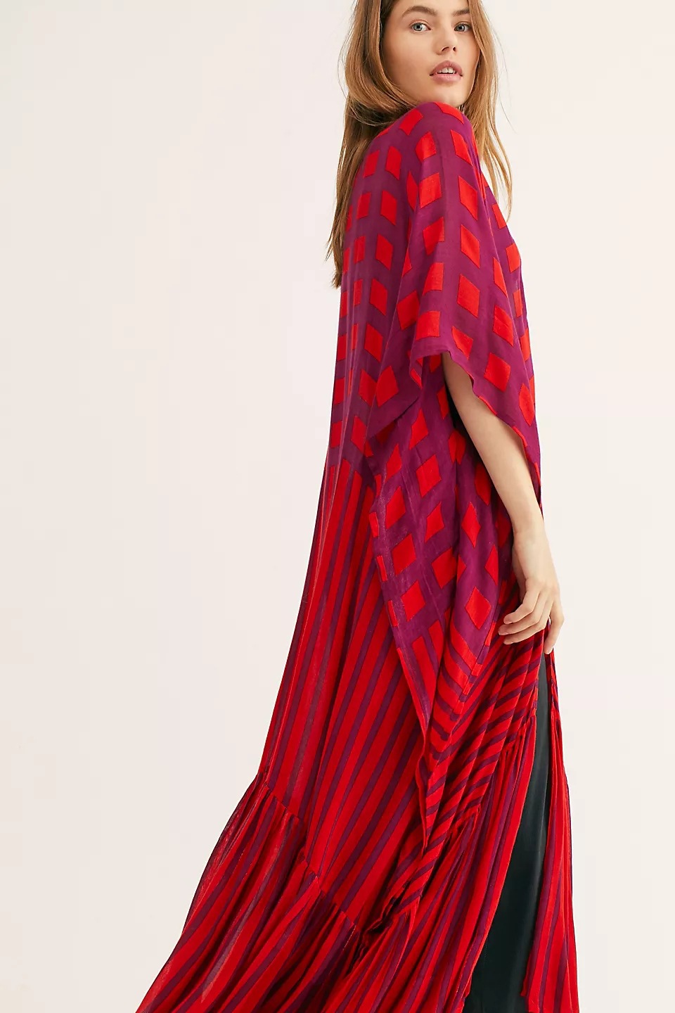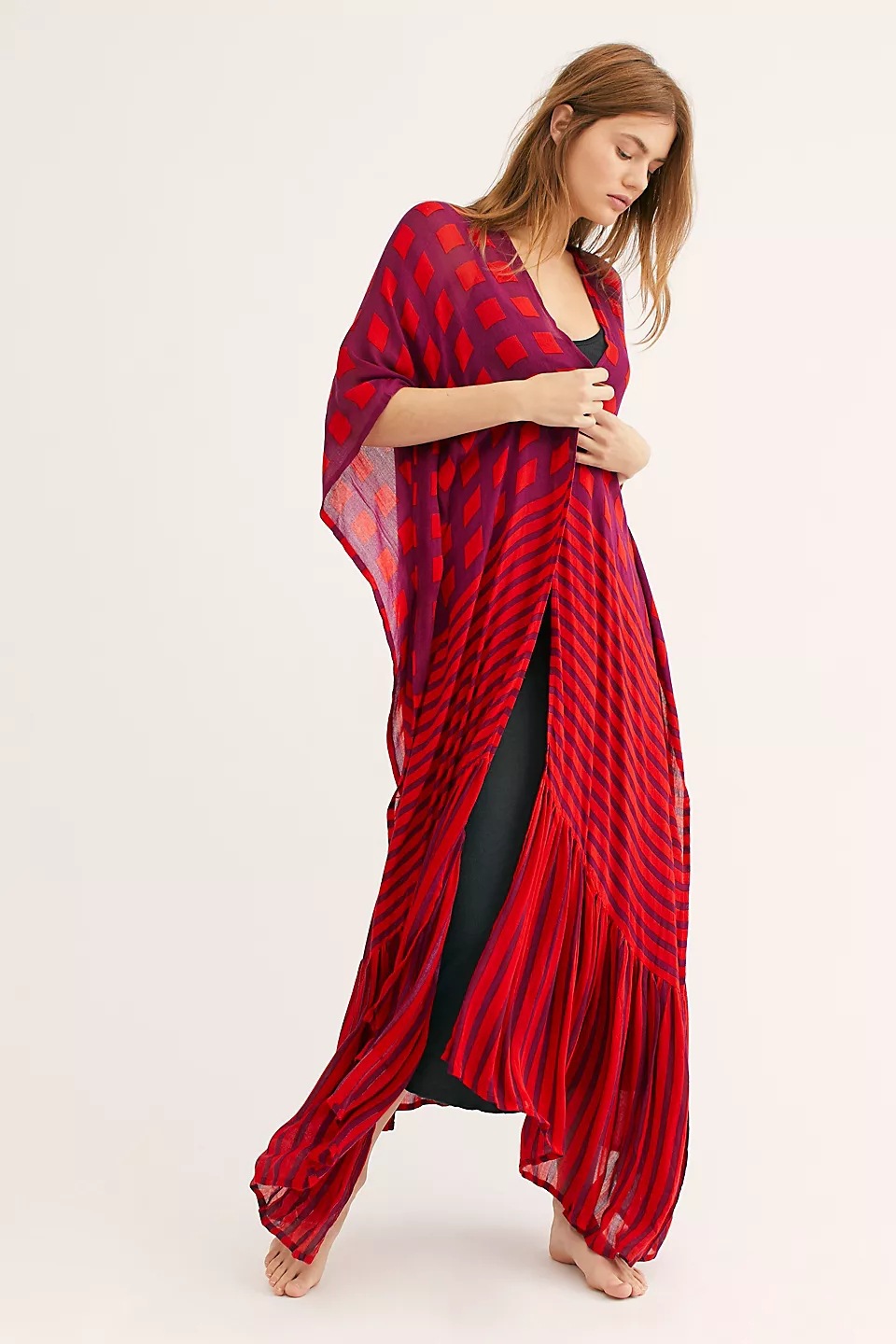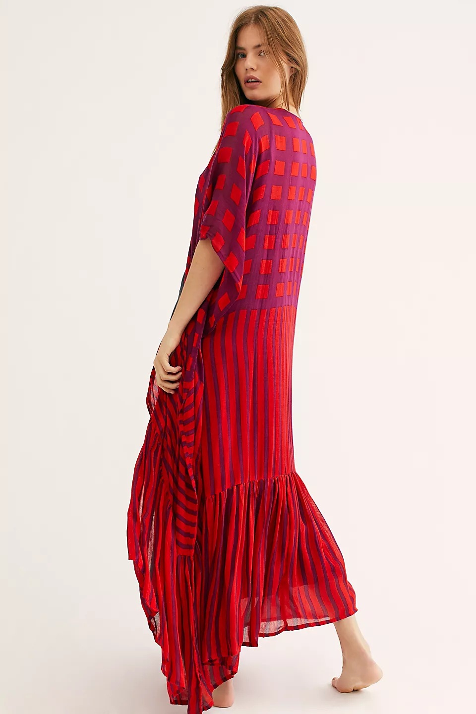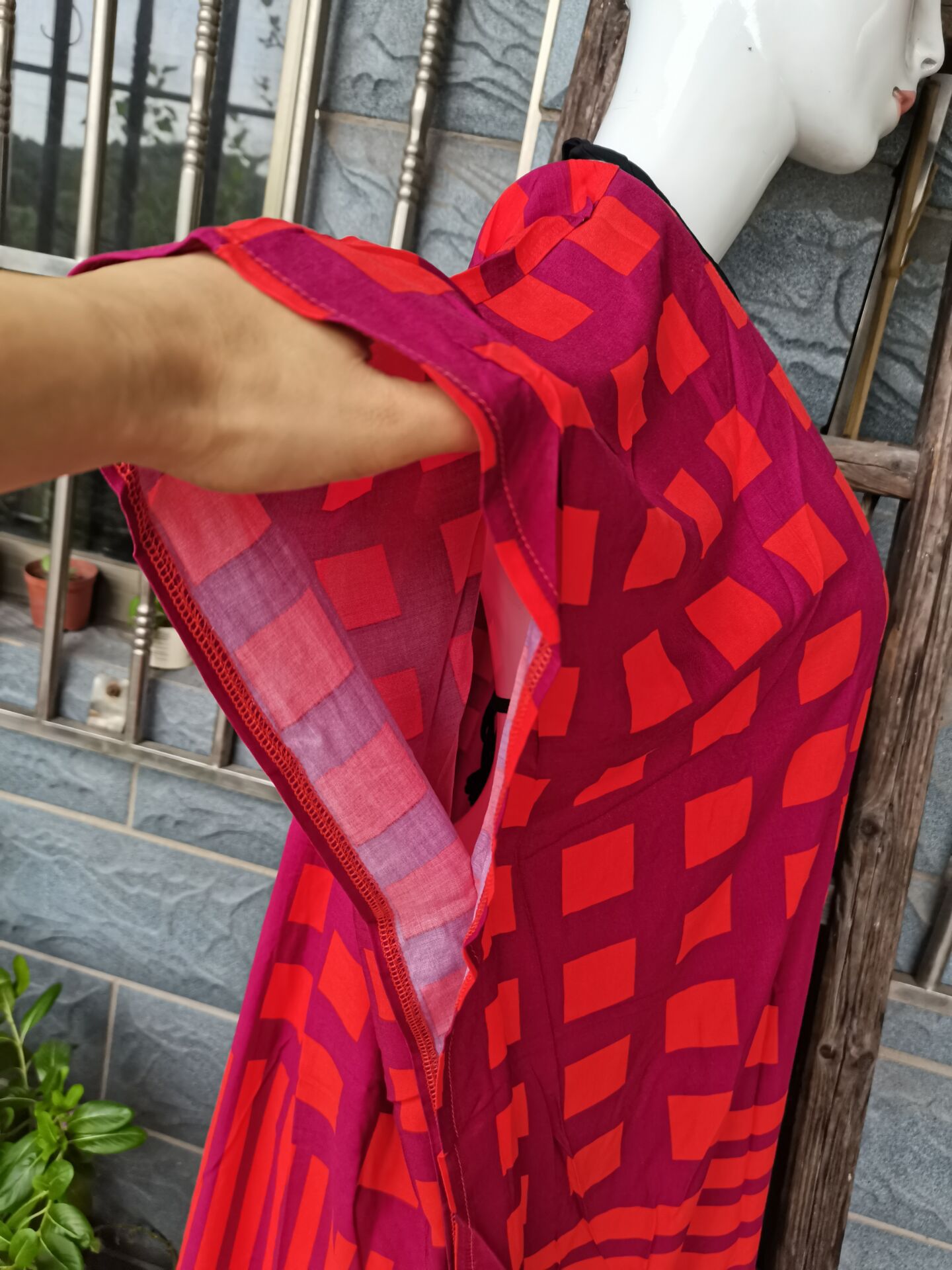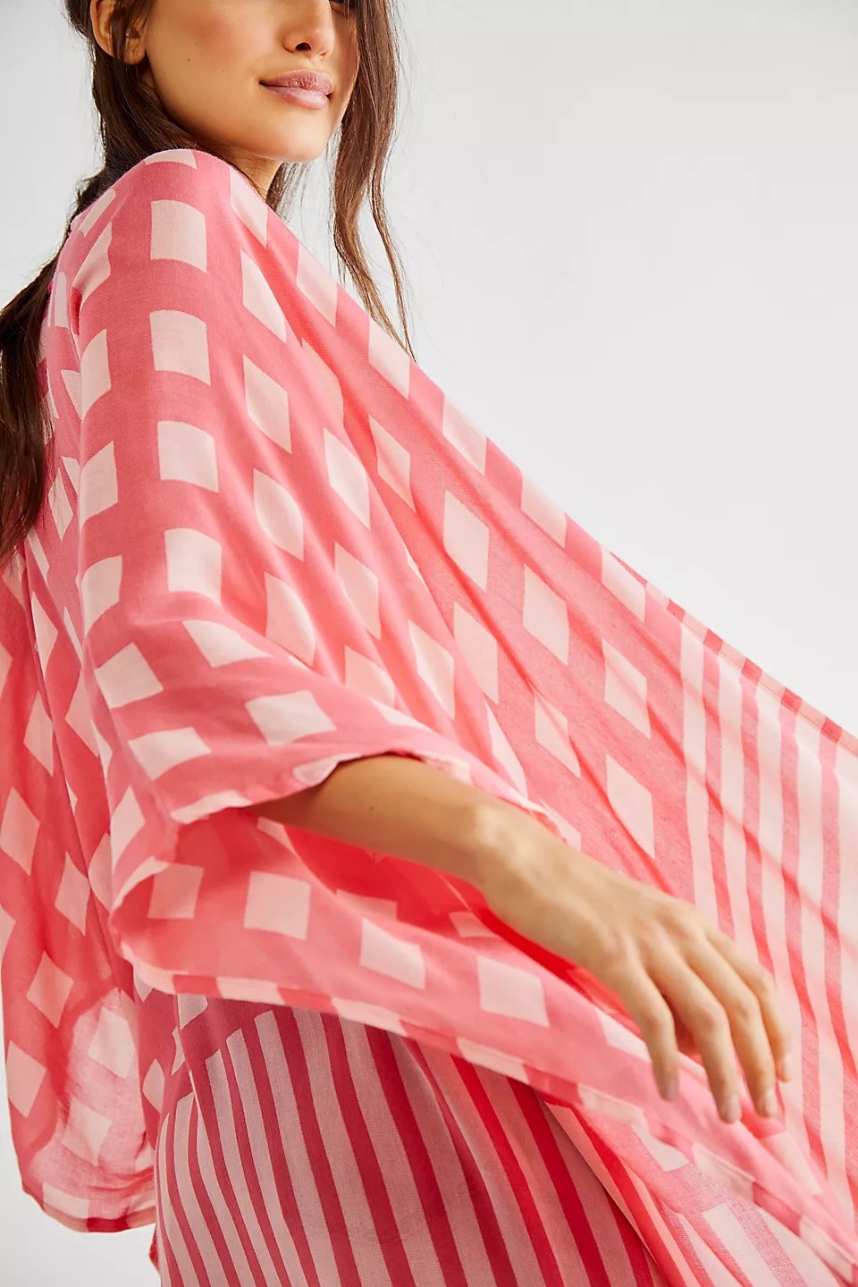 Rayon Plaid Vertical Print Cardigan Holiday Casual Beach Bikini Cover Attached Rope