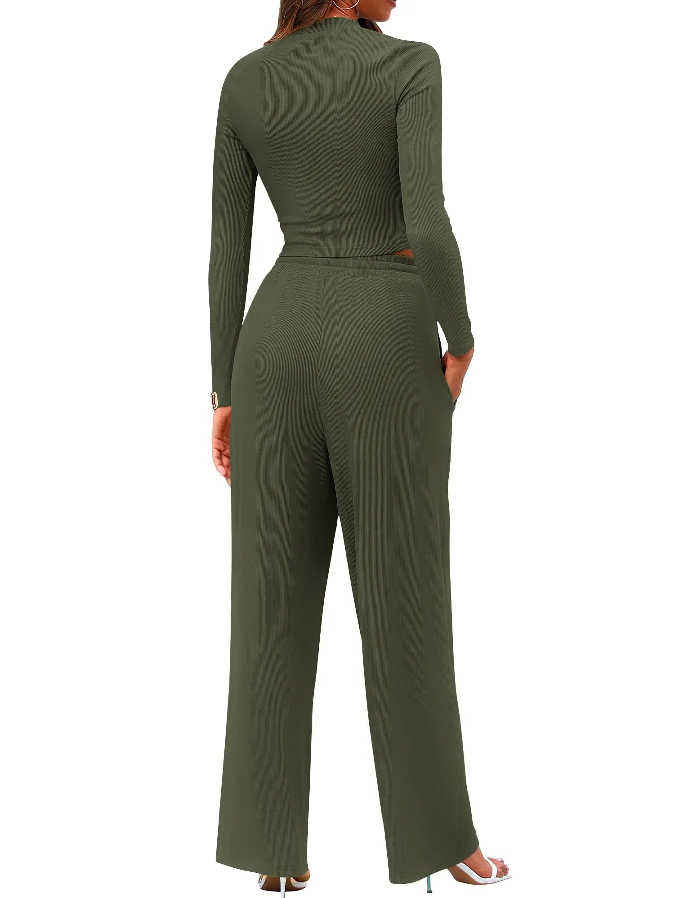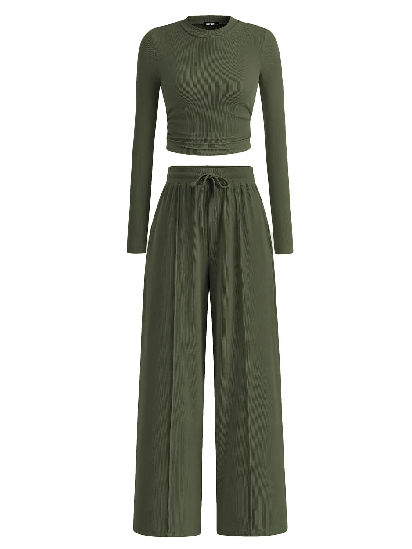 Round Neck Long Sleeve Top and Pants Set