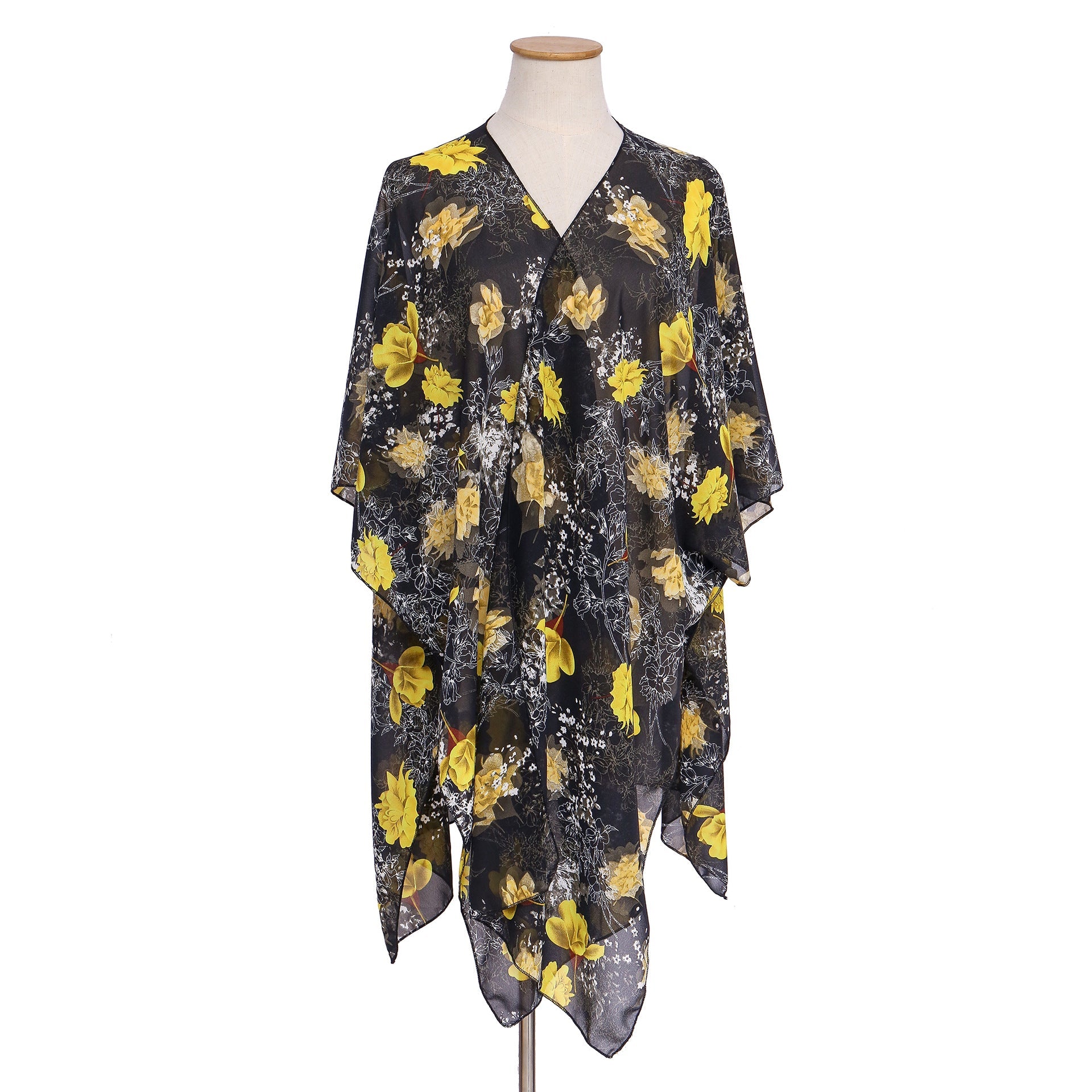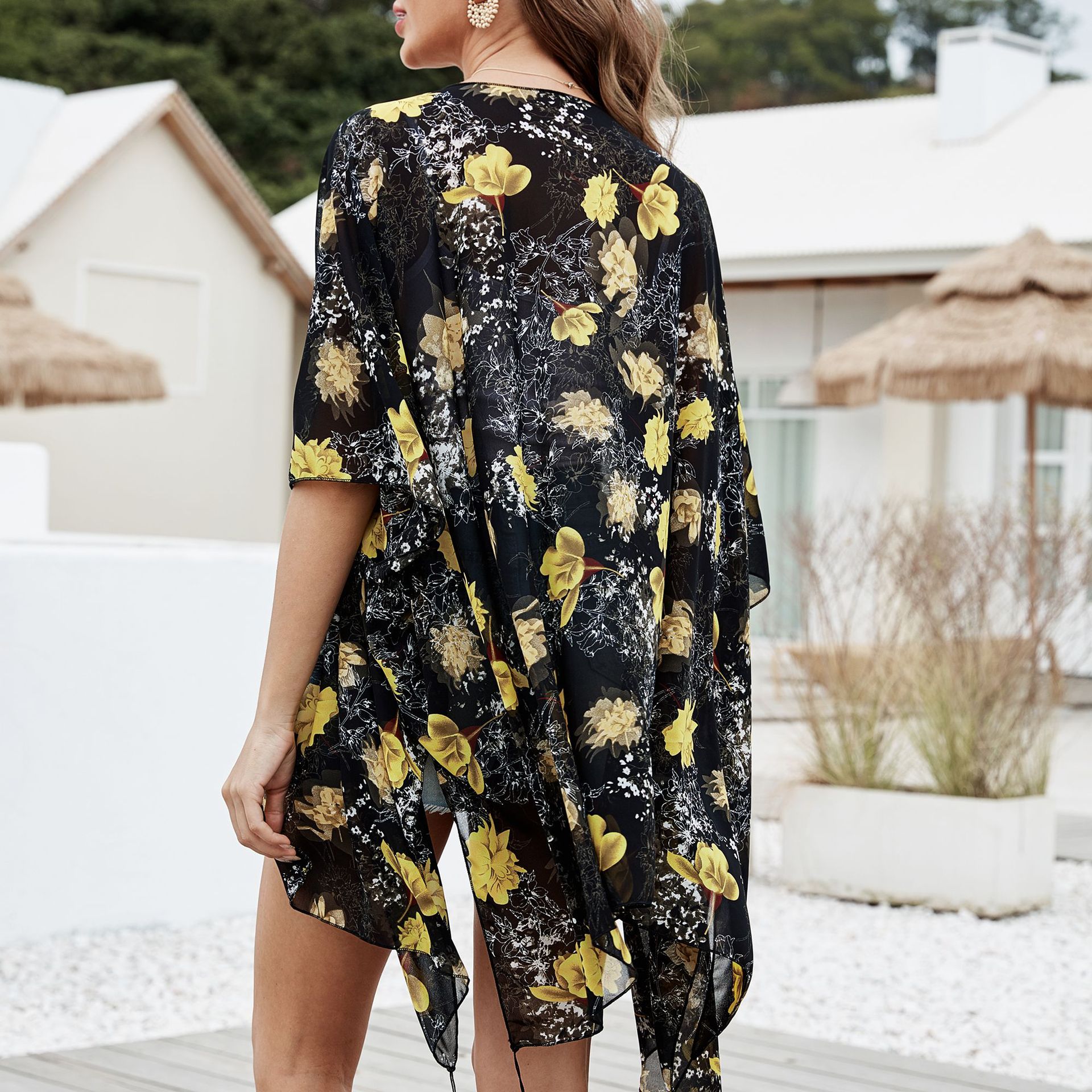 Summer Colorful Floral Print Tassel Sunshade Casual Sun Proof Sun Protection Clothing Mid Length Blouse
