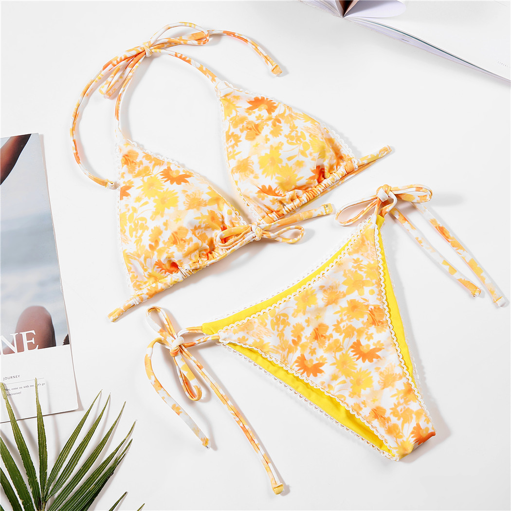 Swimsuit Printed Lace-Up Bikini Swimsuit Women Travel
