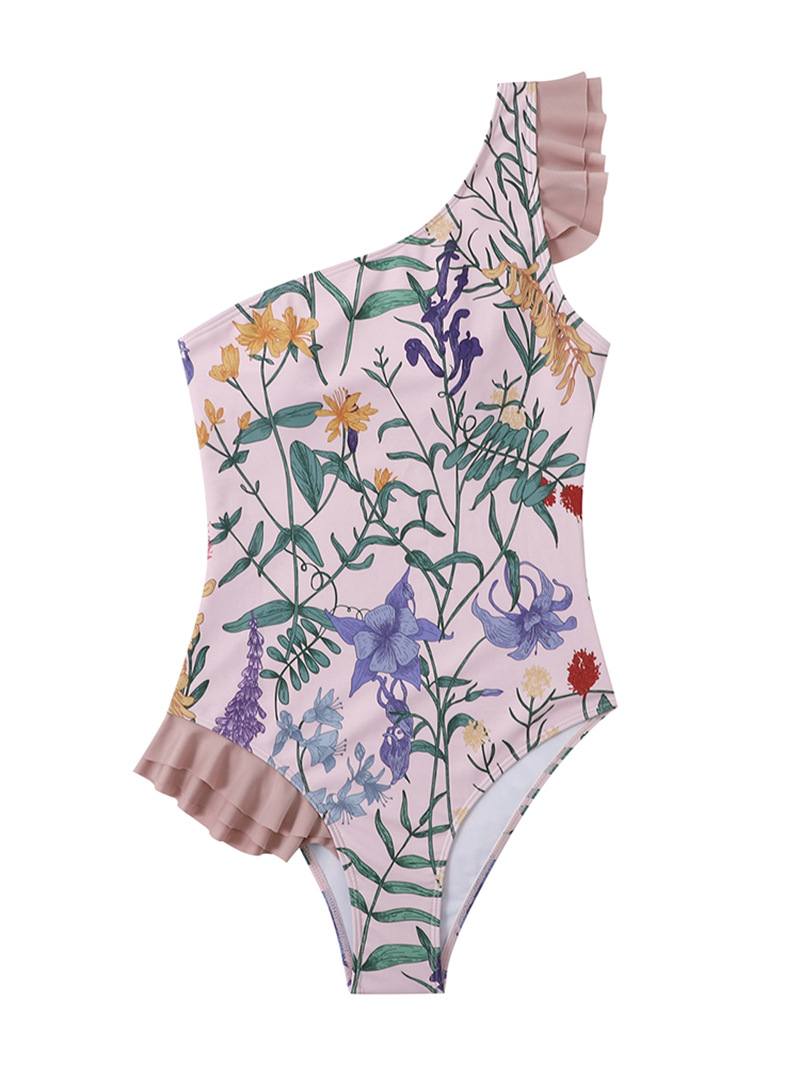 One Piece Swimsuit Women Cover Belly Slimming Swimsuit Polyester Printed Short Skirt Chiffon Dress
