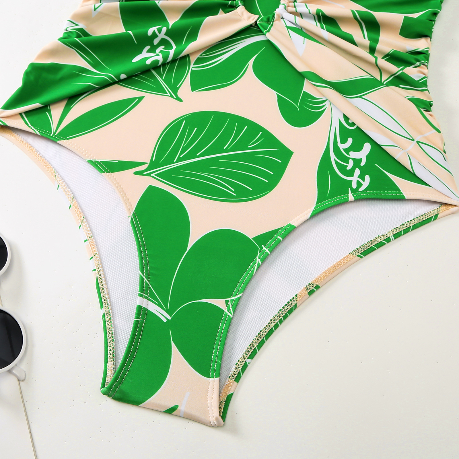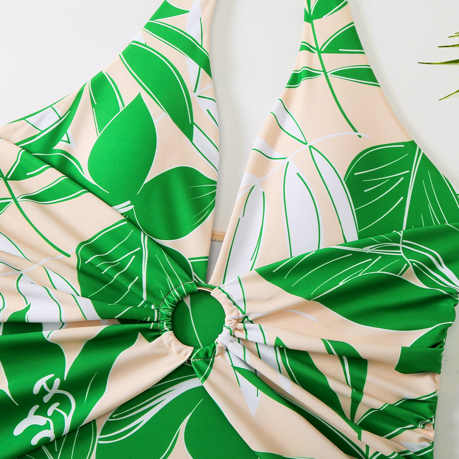 One Piece Swimsuit Women Slimming Retro Swimsuit Green Printing Suit Chiffon Dress