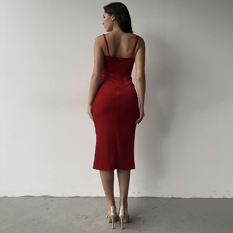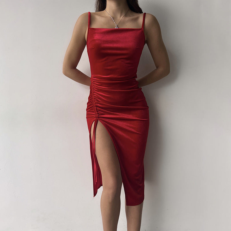 Summer Women Dress Sexy Suede off Neck Slim Sleeveless Split Dress