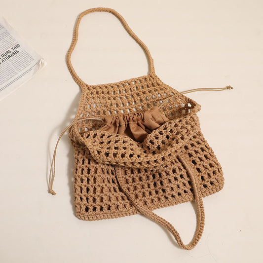 Hollow Out Cutout Portable Cotton Woven Bag Casual Straw Bag Holiday Beach Bag All Match Women Bag